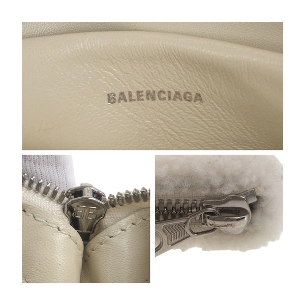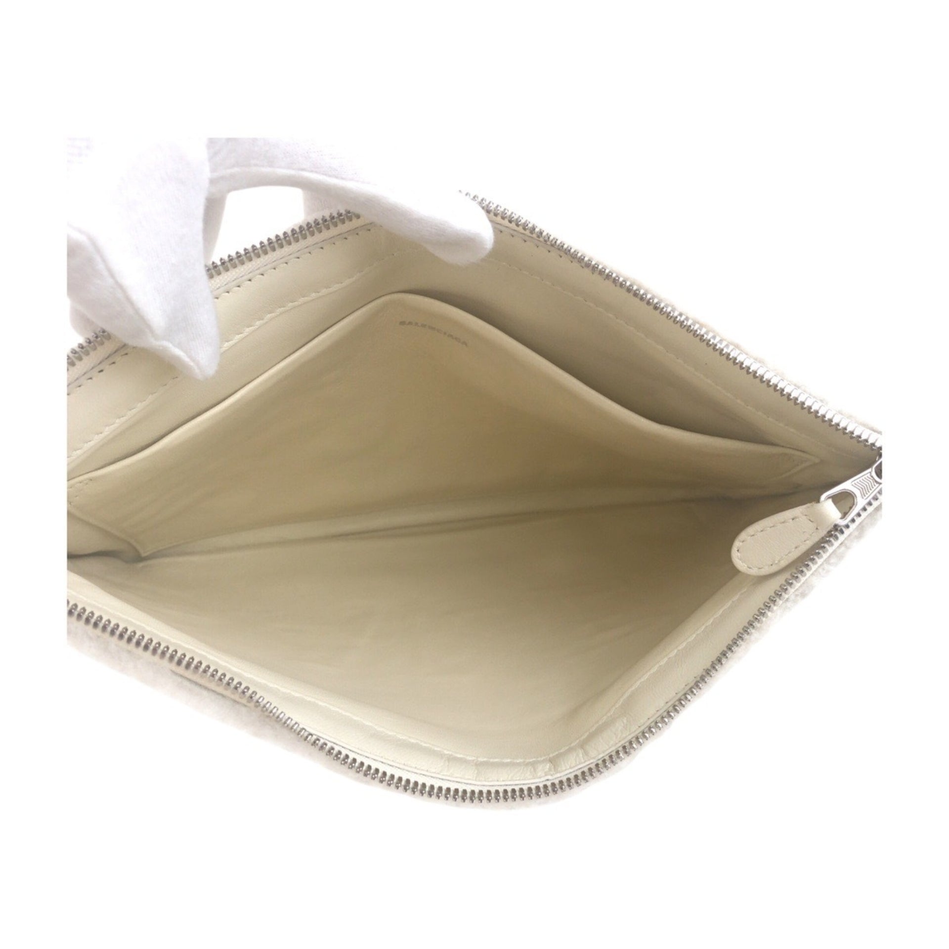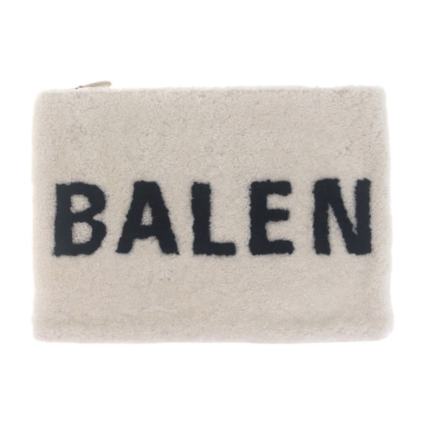 BALENCIAGA Shearling Logo White Silver Hardware Mouton 492681 Clutch Bag for Men