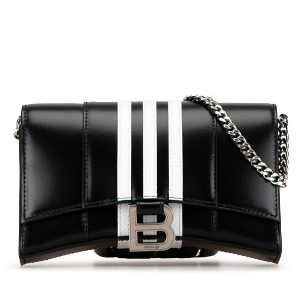 Balenciaga x adidas Hourglass Crossbody Chain Wallet Shoulder Bag 656050 Black White Leather Women\'s BALENCIAGA