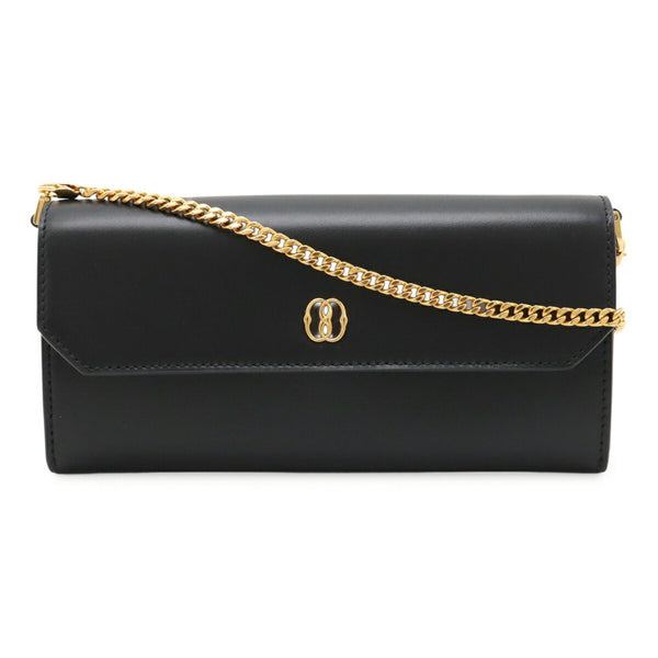 BALLY Emblem Chain Wallet Long Shoulder Bag Leather Black 6304817