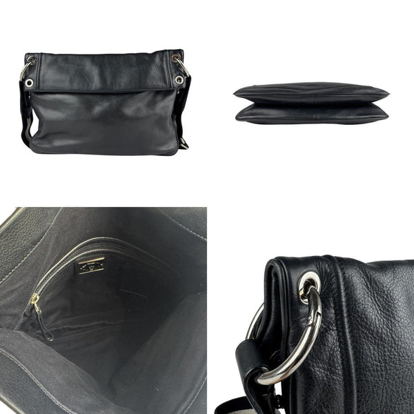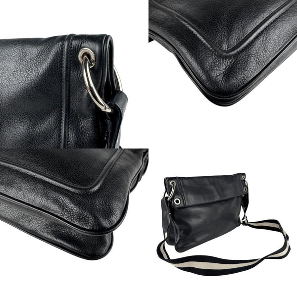BALLY Shoulder Bag Leather Canvas Black Off-White Silver Men\'s Women\'s z6076