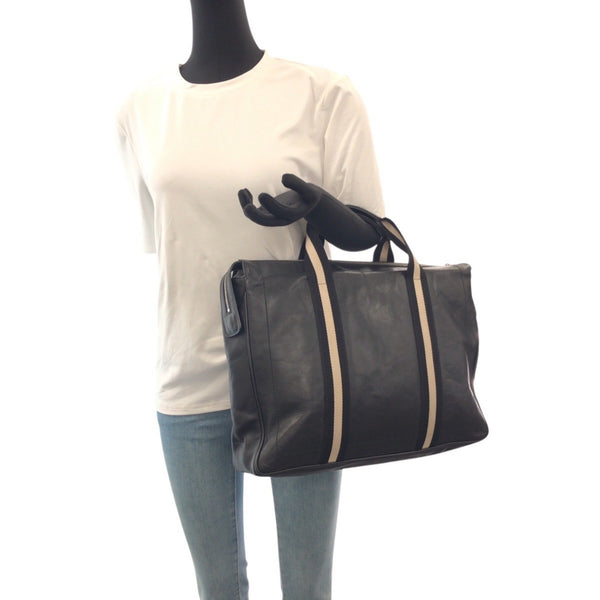 BALLY Trainspotting Black/White with Silver Hardware, Leather and Canvas Business Bag/Briefcase for Men