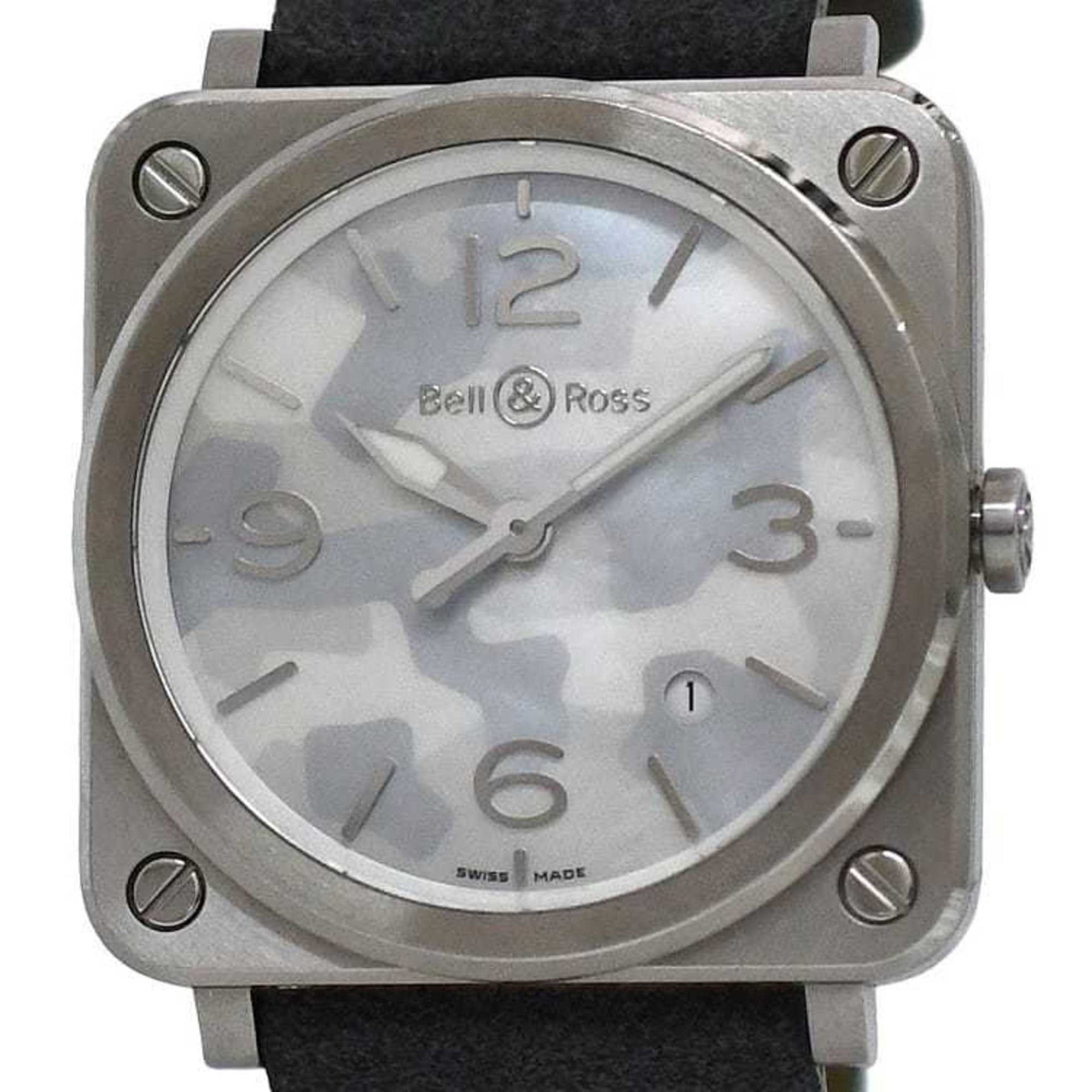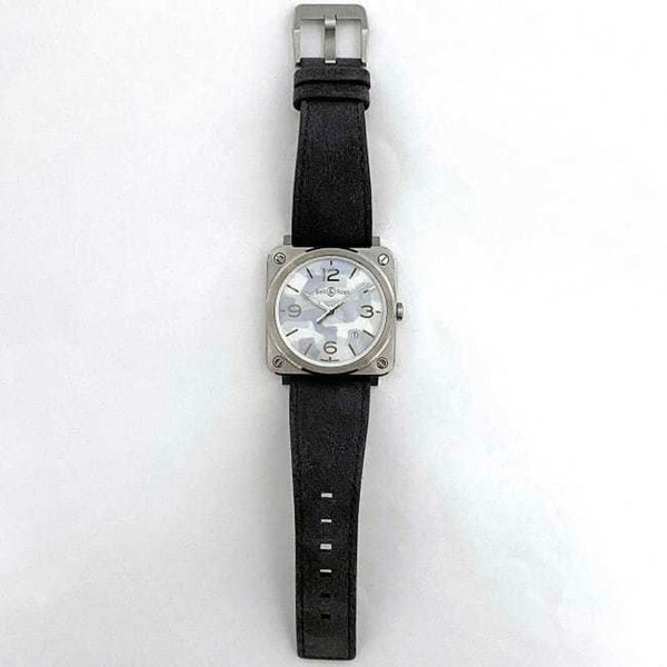 Bell & Ross Watch Aviation 39 f-22679 Camouflage White Shell Silver Gray BRS-64-S Men\'s SS Suede Leather Rubber Quartz Square Dial Interchangeable Strap Battery Operated
