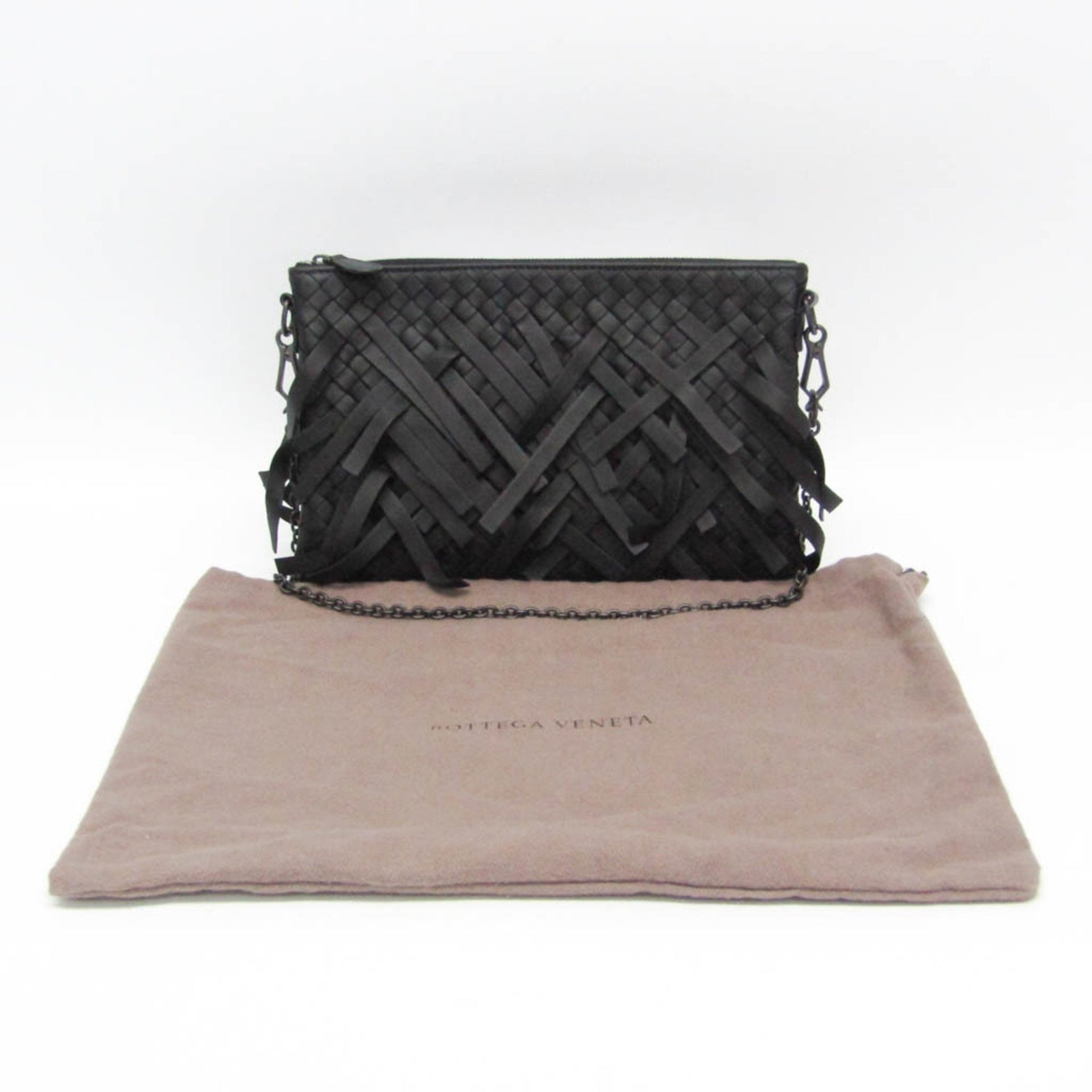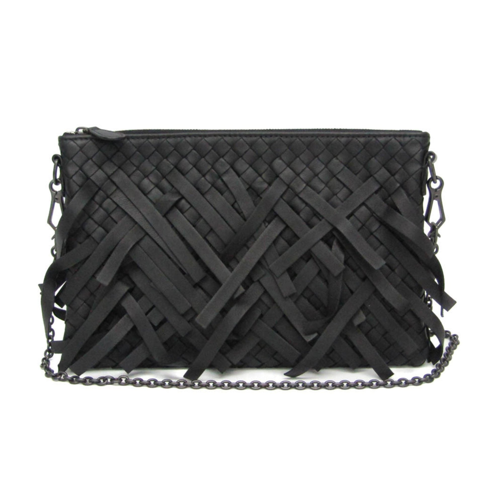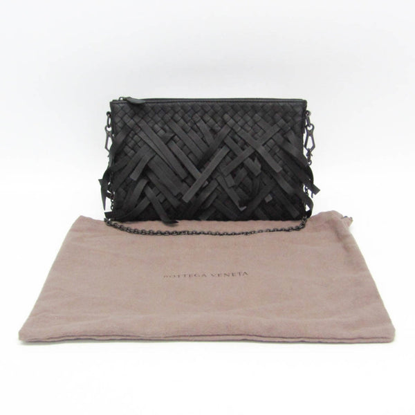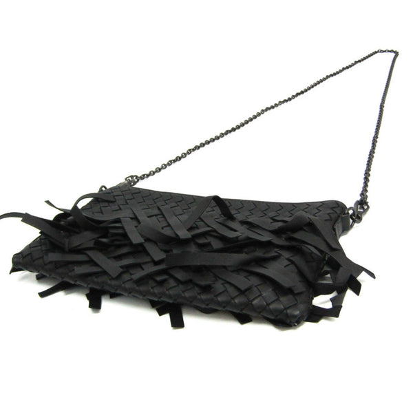 Bottega Veneta Intrecciato Fringed Chain Shoulder Bag Women\'s Leather Shoulder Bag Black