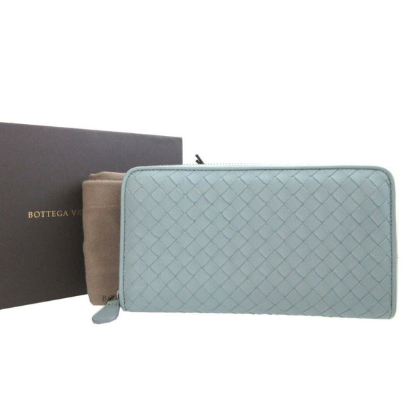 Bottega Veneta Intrecciato Leather Light Blue Round Long Wallet 1370BOTTEGA VENETA