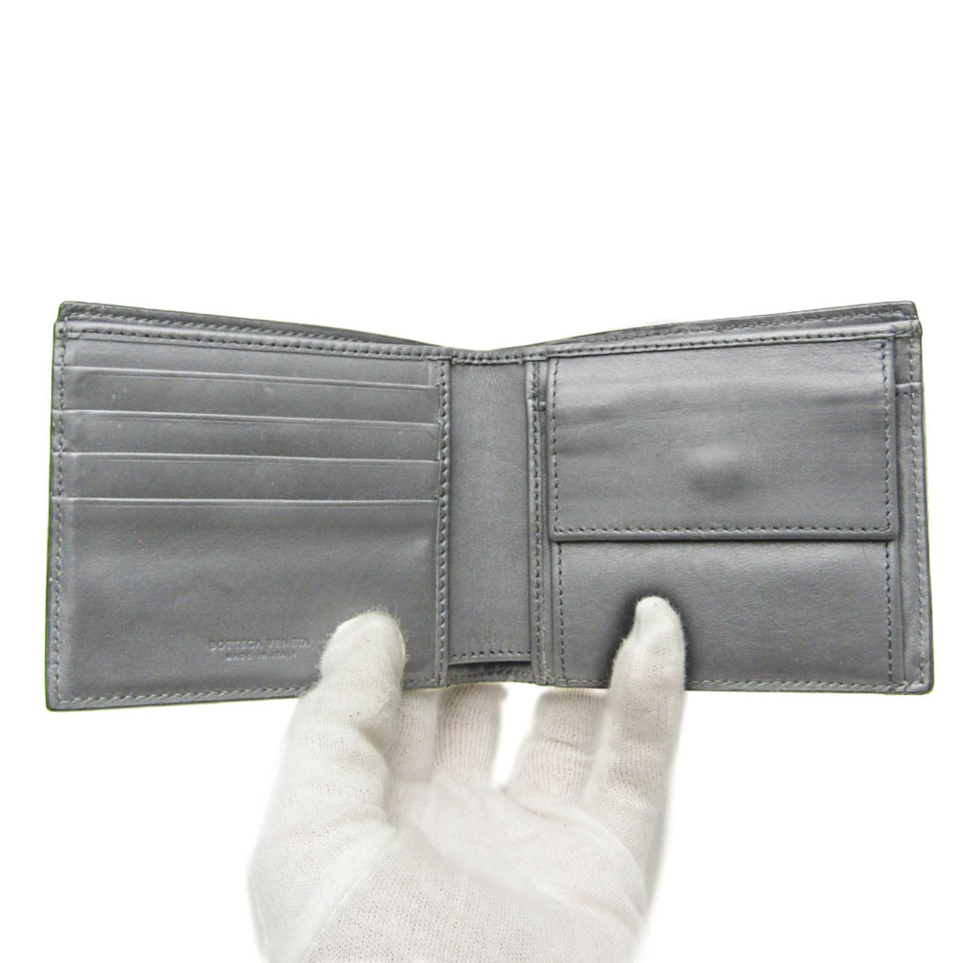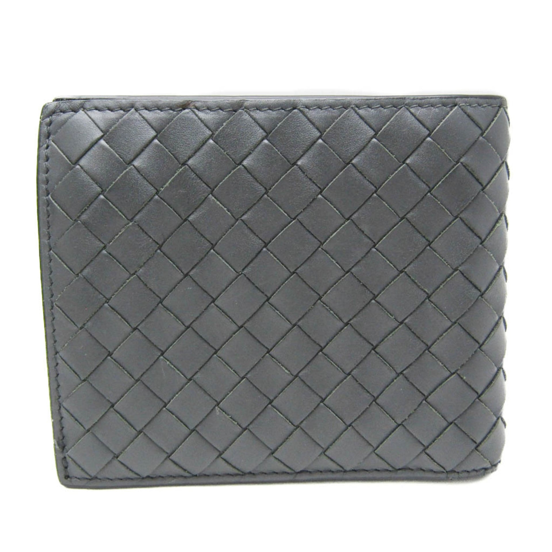 Bottega Veneta Intrecciato Men,Women Lambskin Wallet (bi-fold) Dark Gray