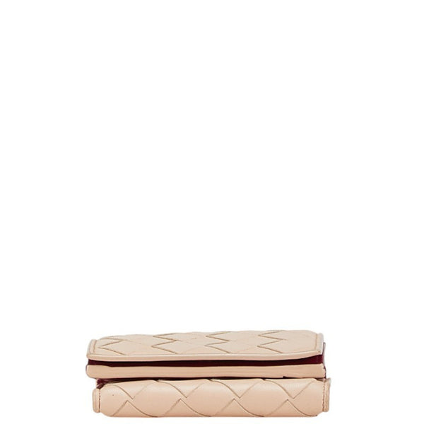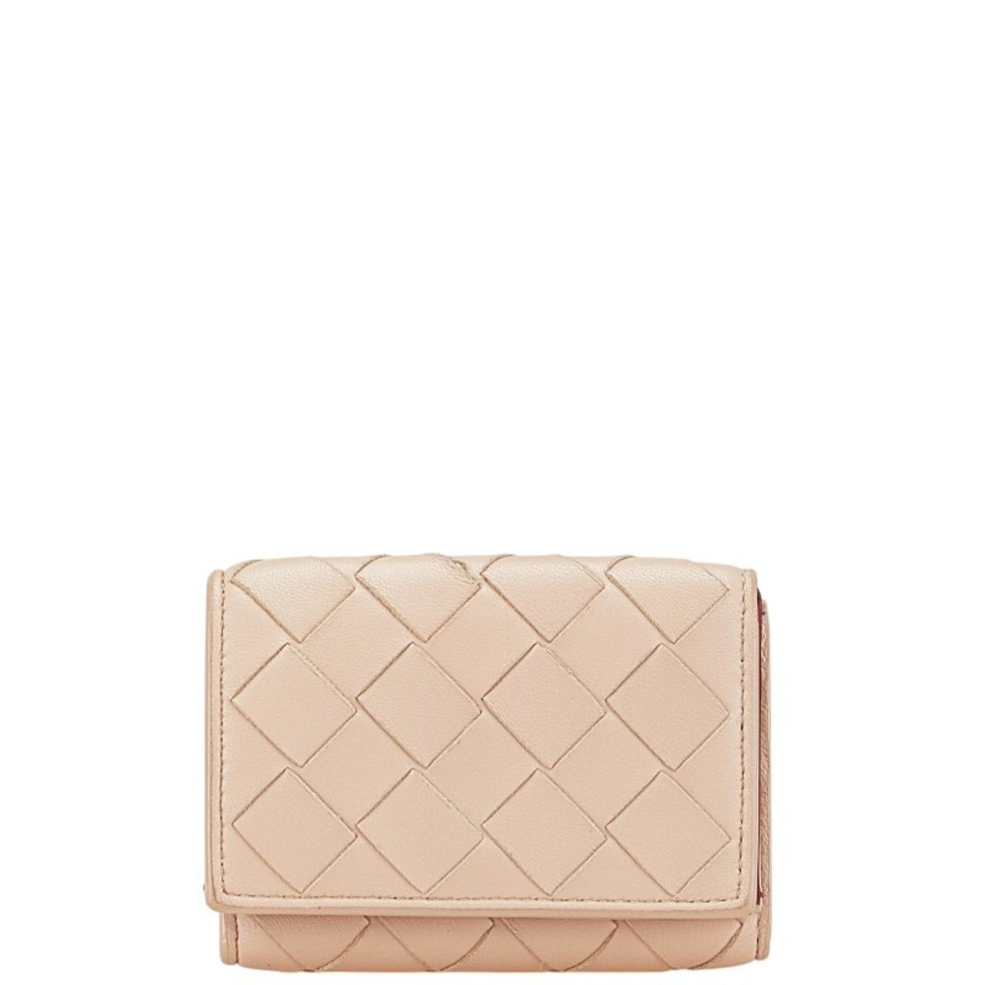 Bottega Veneta Intrecciato Tri-fold Wallet Beige Pink Leather Women\'s BOTTEGAVENETA