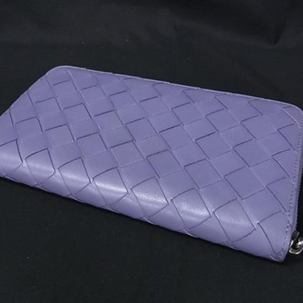BOTTEGA VENETA Intrecciato Zip-Around Wallet 608053 Lavender Leather for Men and Women