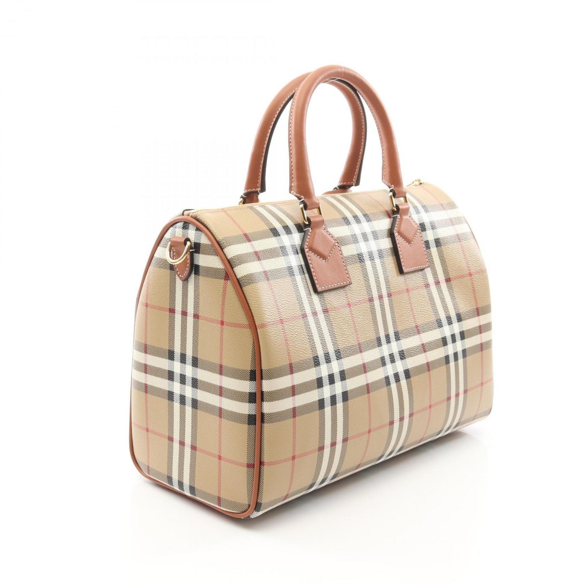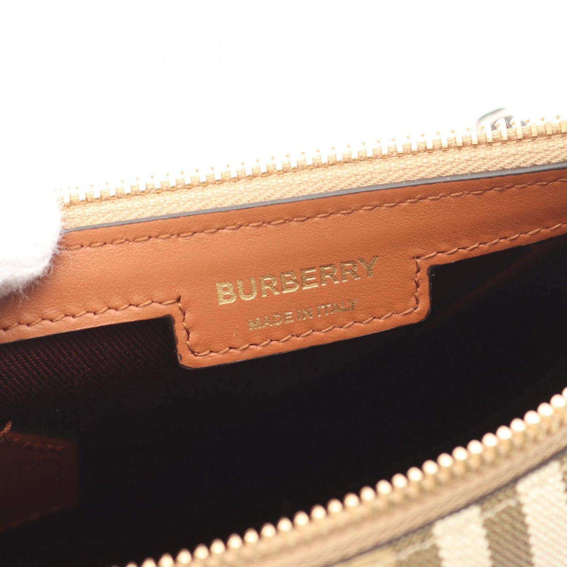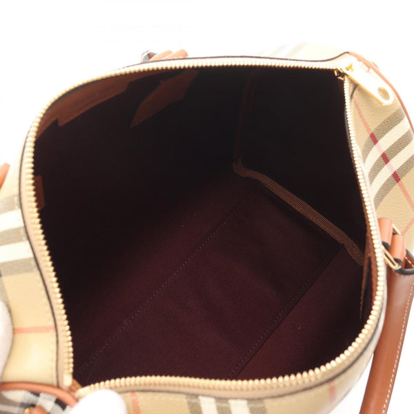 Burberry Check Handbag Leather Coated Canvas Women\'s Beige Brown 8092085