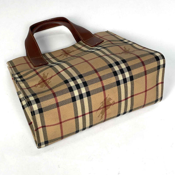 Burberry Check Pattern Handbag Tote Bag Coated Canvas Brown Women\'s