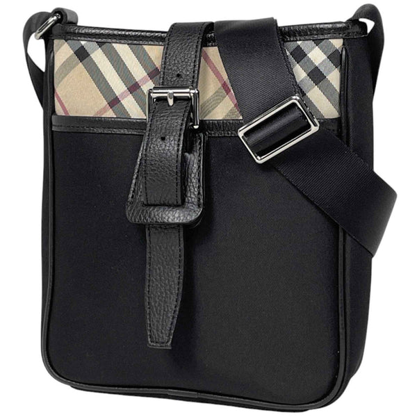 Burberry Check Pattern Shoulder Bag, Crossbody Canvas, Black and Beige, Women\'s