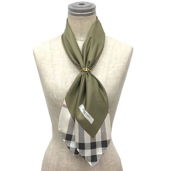 BURBERRY Check Scarf/Muffler in Silk, Beige and Khaki.