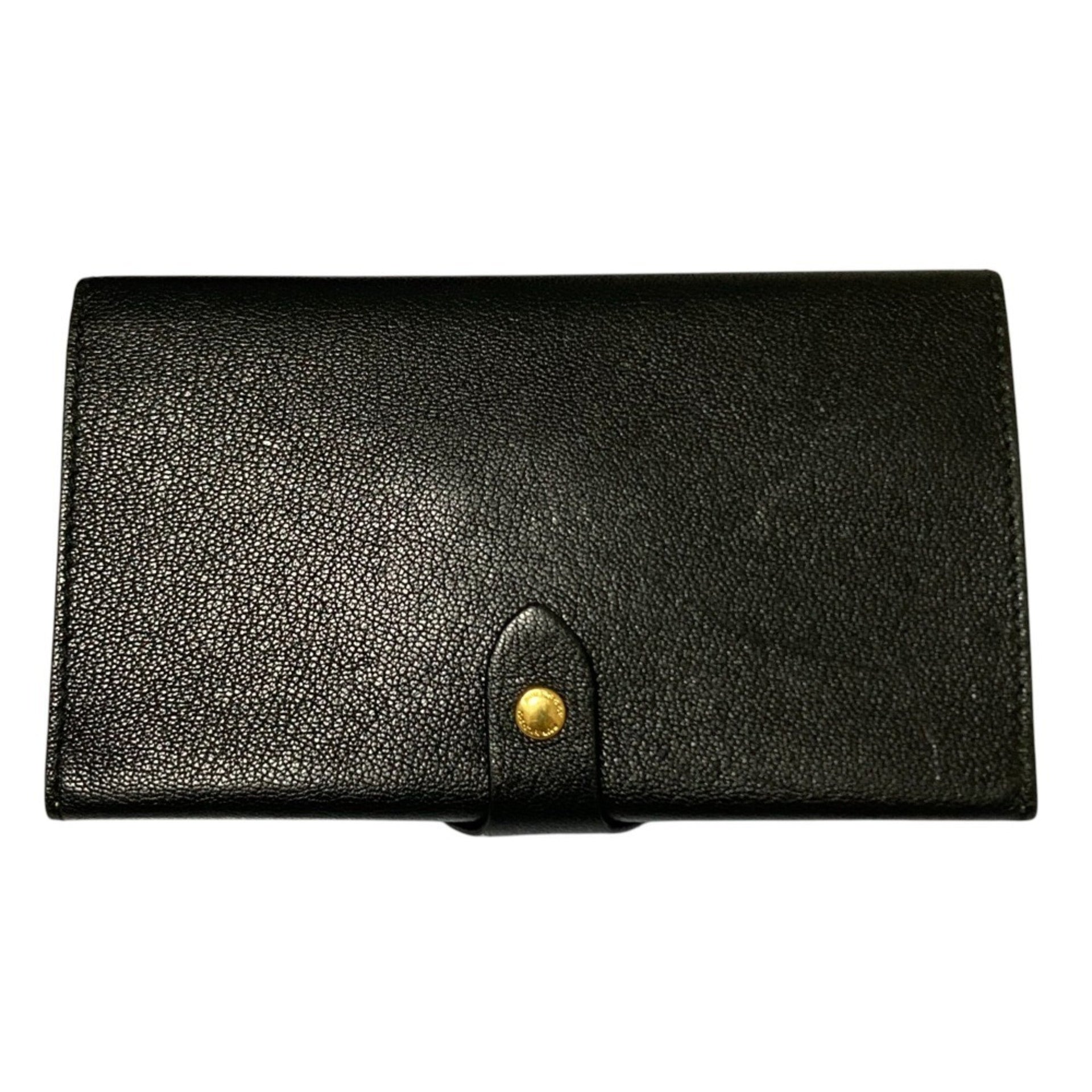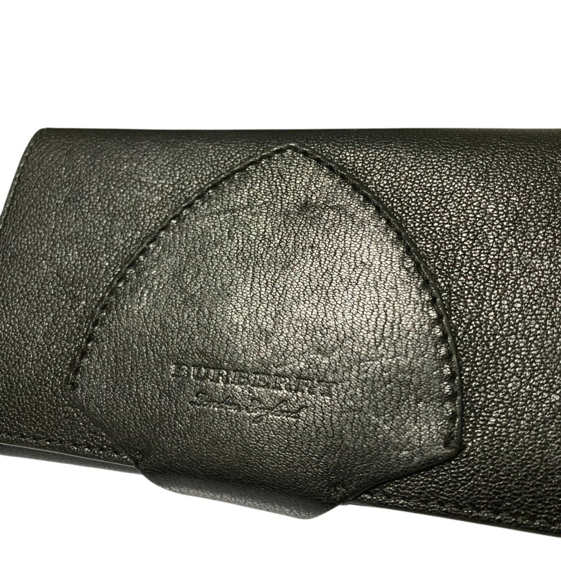 BURBERRY Leather Long Wallet, Bi-fold Black x Yellow, Bicolor, Men\'s, Women\'s