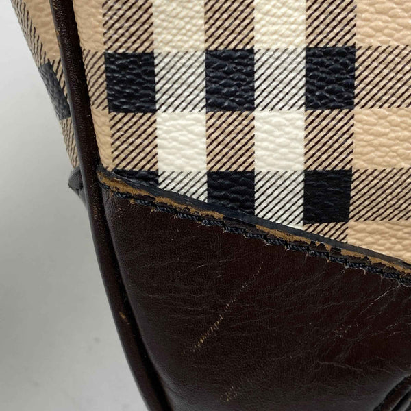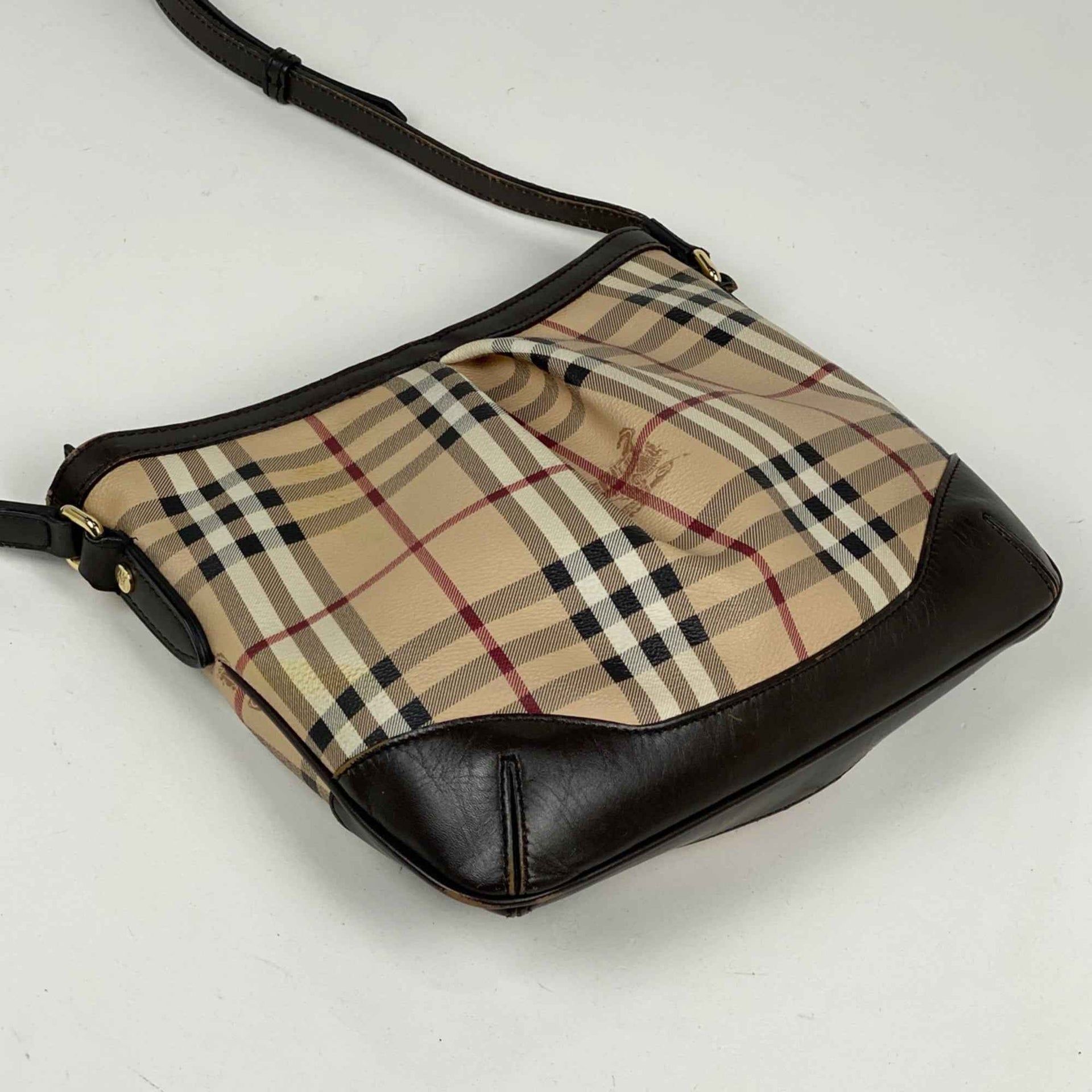 Burberry logo shoulder bag in Nova check pattern, coated canvas, beige and brown. Women\'s.
