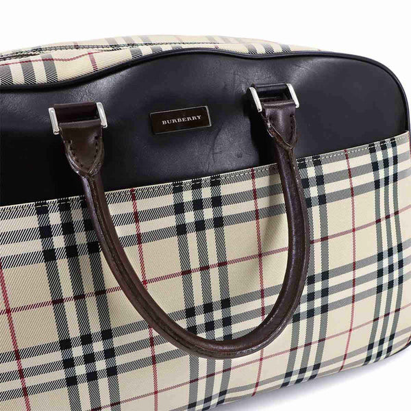 Burberry Nova Check 2-Way Boston Shoulder Bag in Canvas and Leather (Beige Brown)