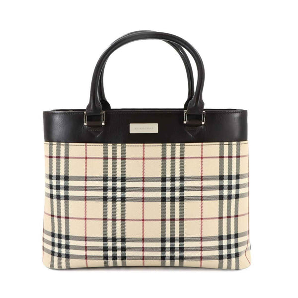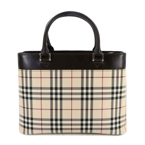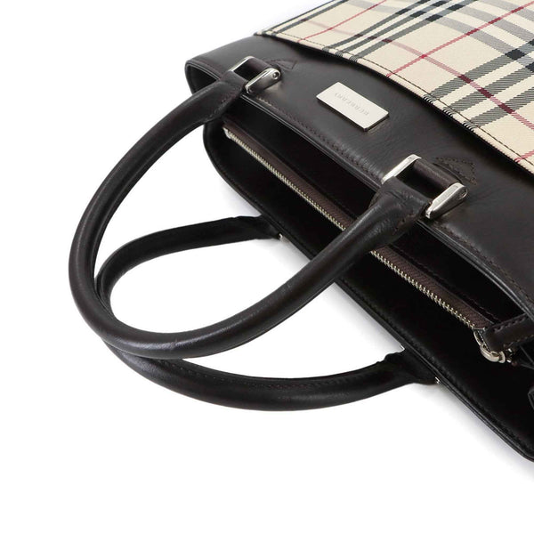 Burberry Nova Check Handbag Canvas Leather Beige Brown Hand Bag