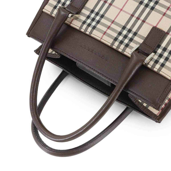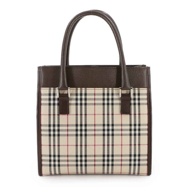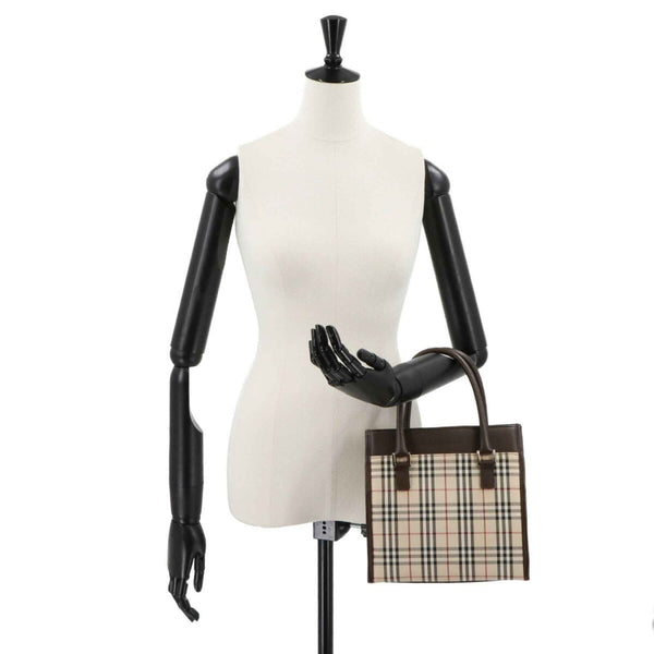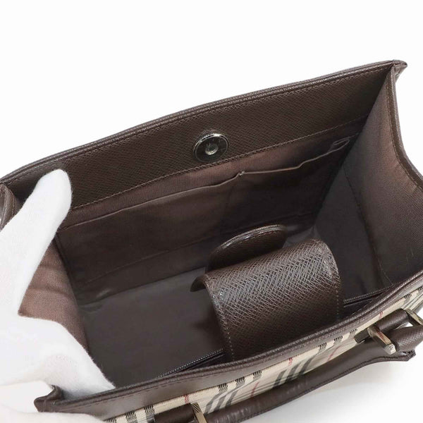Burberry Nova Check Handbag Canvas Leather Beige Brown Hand Bag