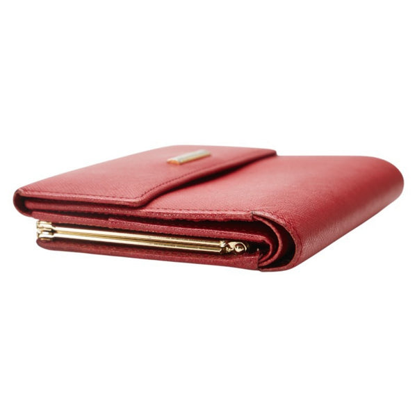 Burberry Nova Check Logo Plate Clasp Bifold Wallet Red Leather Women\'s BURBERRY