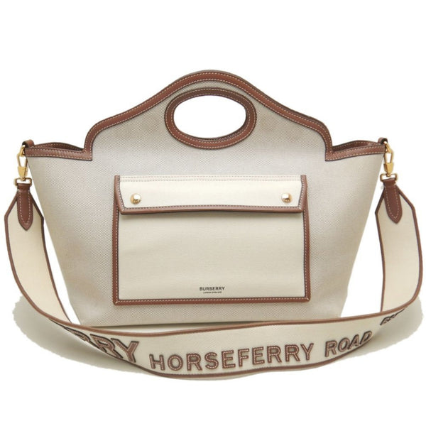 BURBERRY Small Soft Pocket Tote Bag 8041803 Canvas and Leather Natural Tan 252966