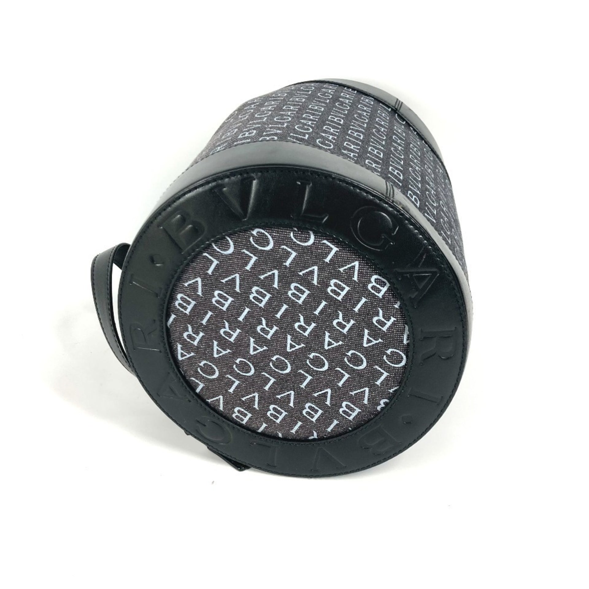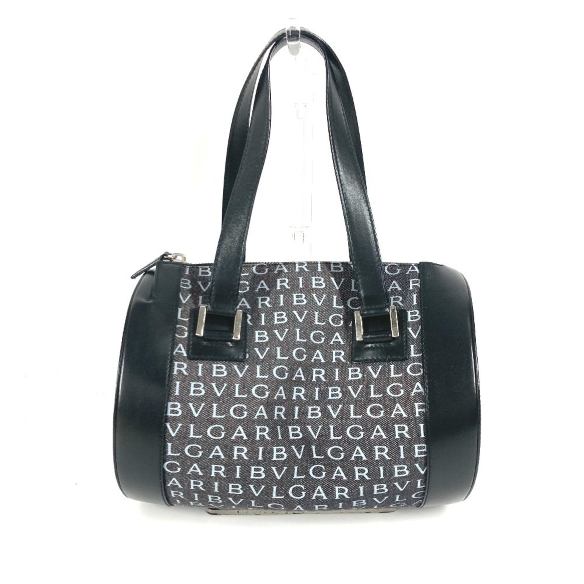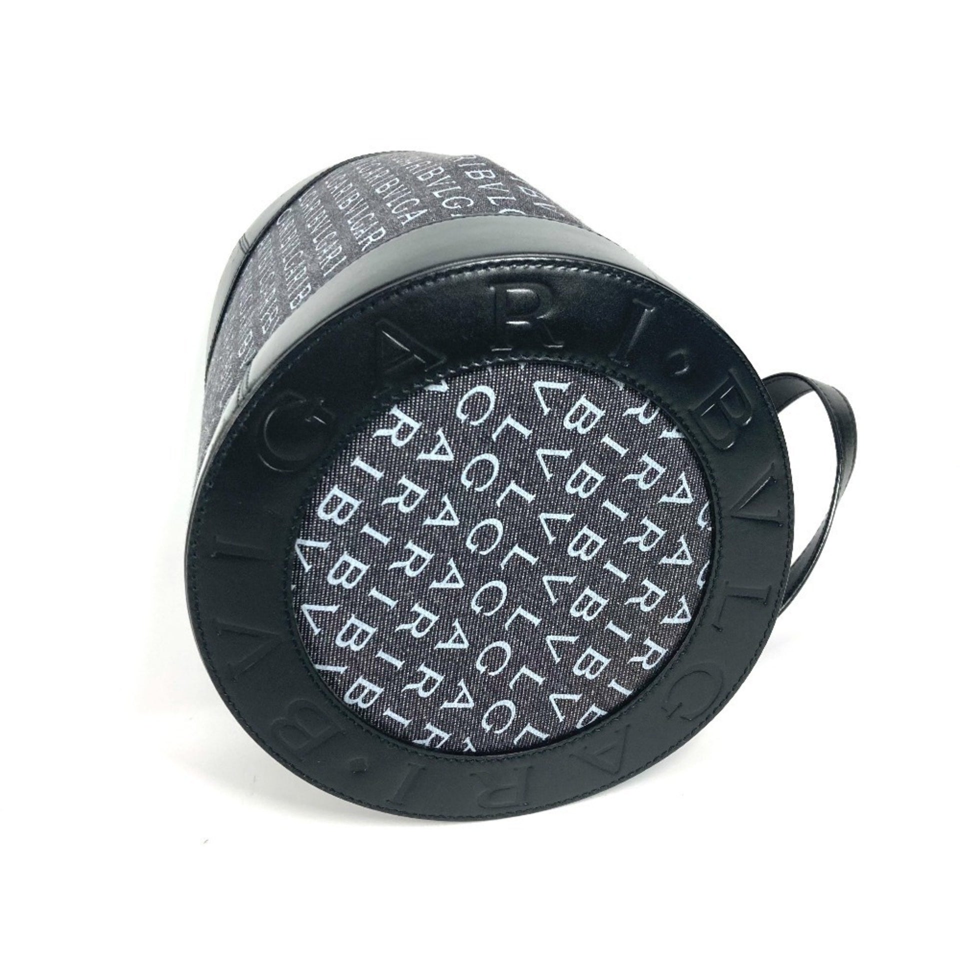 BVLGARI B-ZERO1 Logomania Drum Cylindrical Bag Shoulder Handbag Denim Leather Women\'s Black