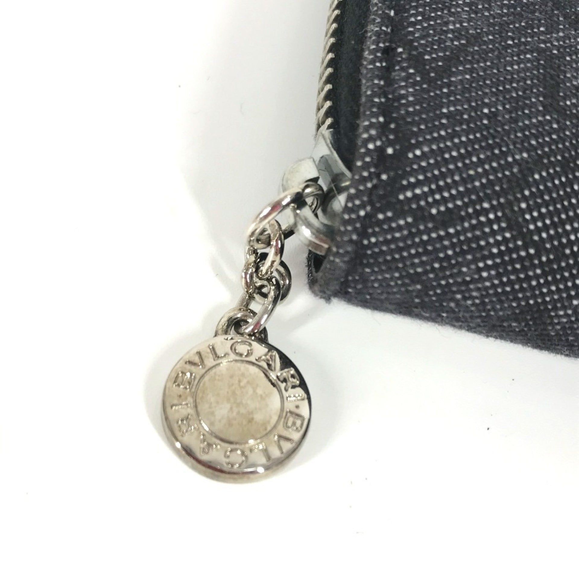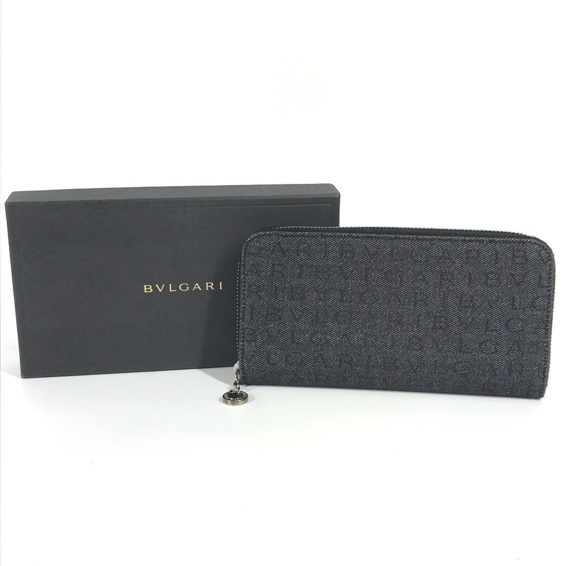 BVLGARI Bulgari Logo Long Wallet Round Zipper Denim Men Women Blue