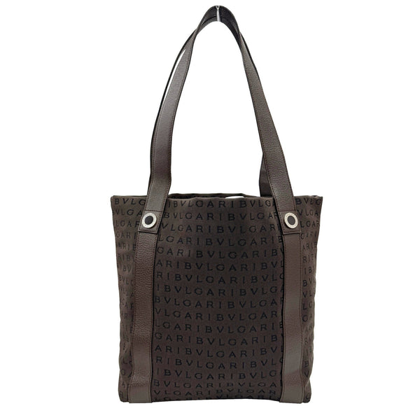 BVLGARI Bvlgari Mania Tote Bag Brown Canvas Leather Women\'s