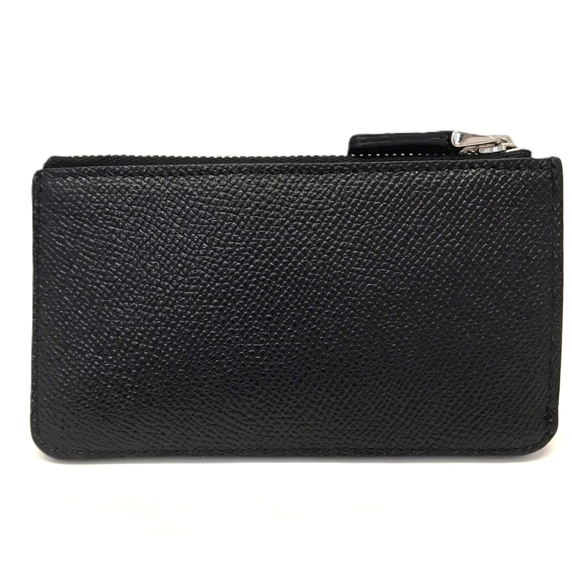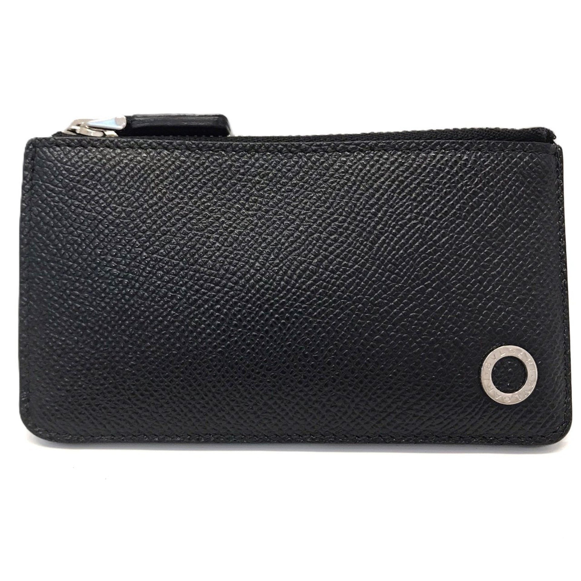 BVLGARI Coin Purse, Key Case, Black, Men\'s, Black Leather,