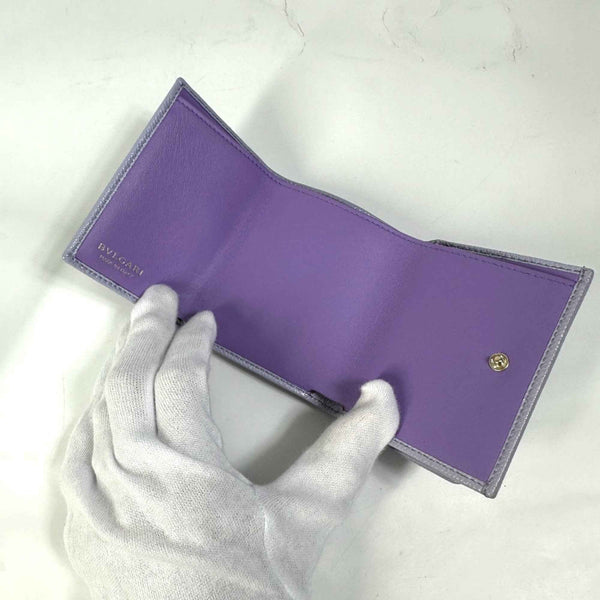 BVLGARI Compact Tri-fold Wallet Leather Women\'s Purple
