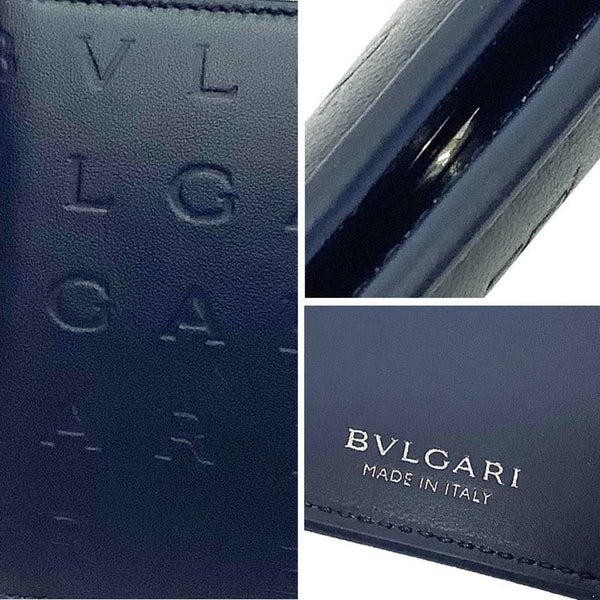 BVLGARI Leather Card Case 292912 Infinitum Navy Wallet
