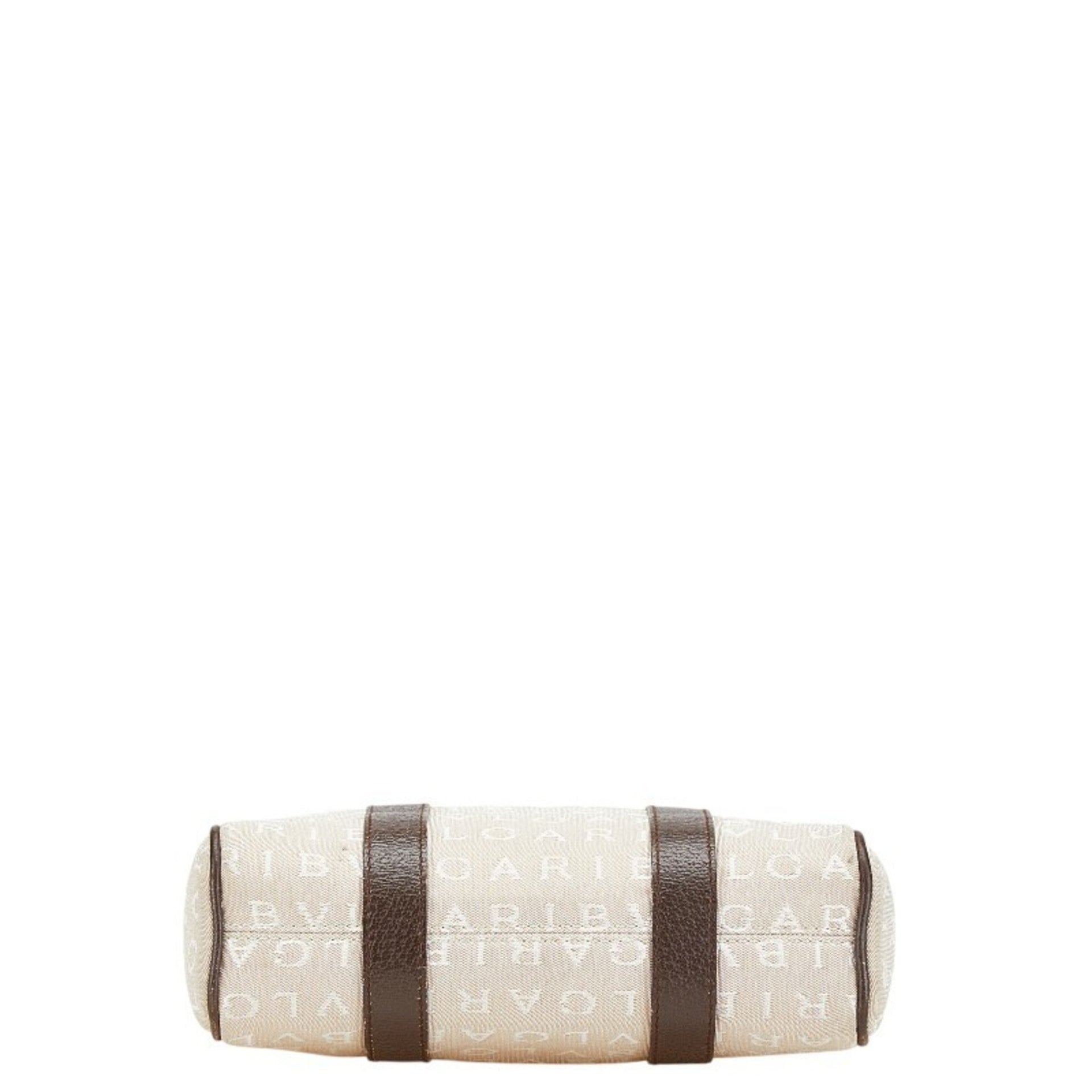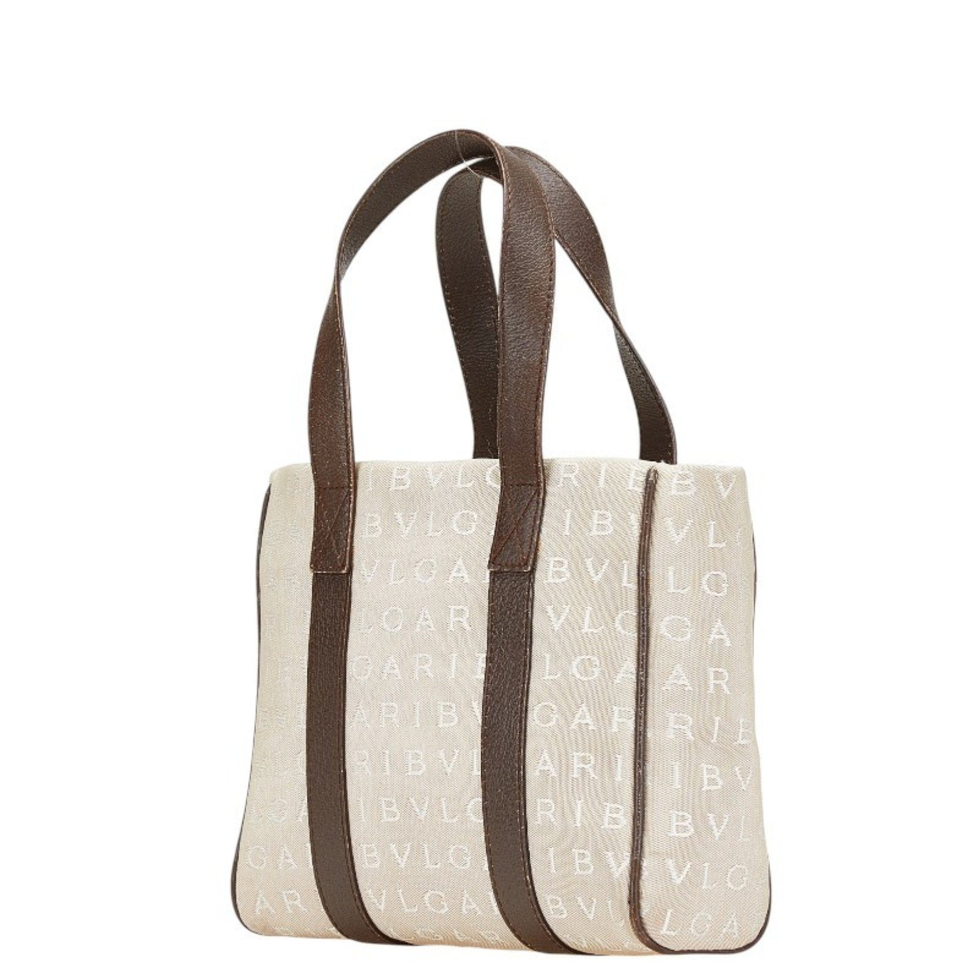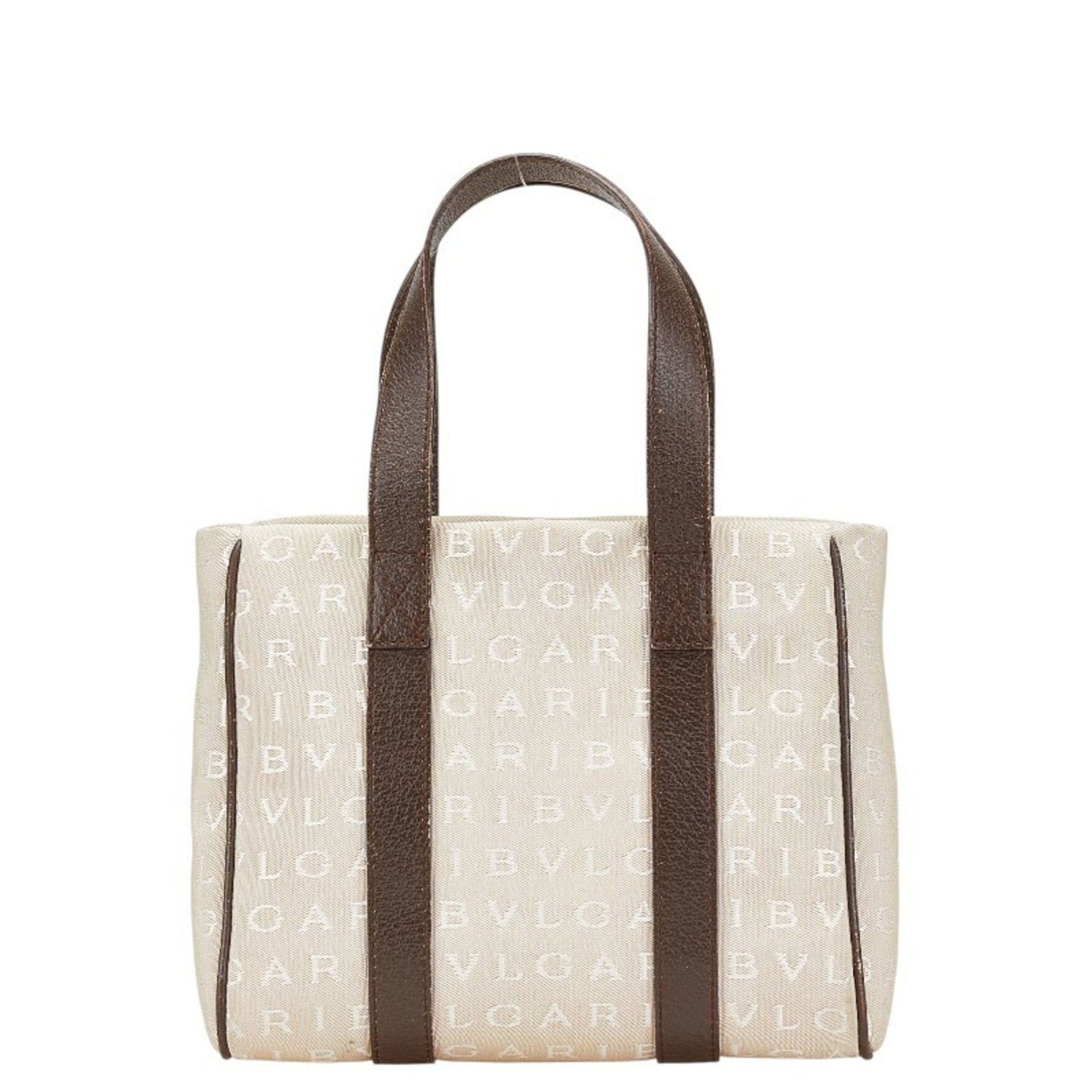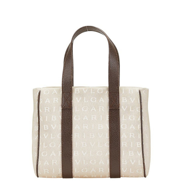 Bvlgari Logomania Handbag Mini Tote Bag Beige Brown Canvas Leather Women\'s BVLGARI