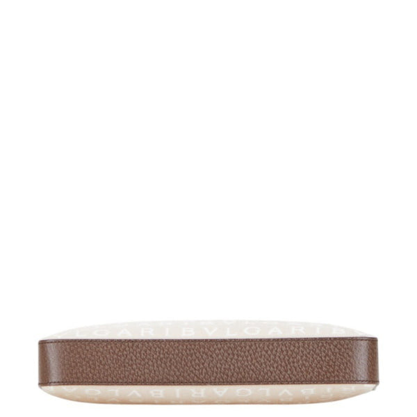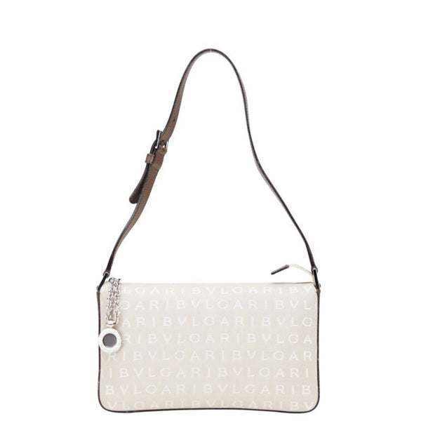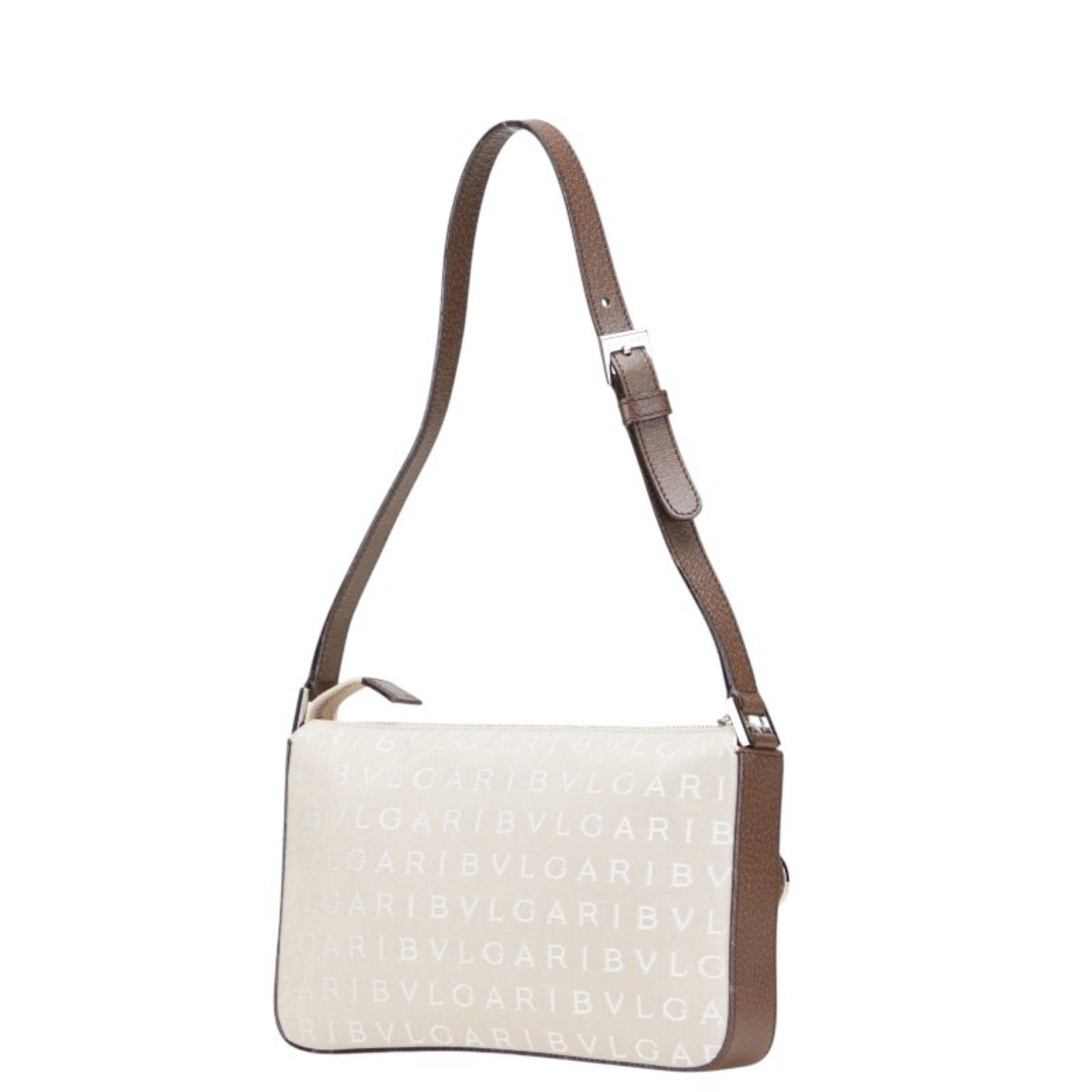 Bvlgari Logomania One-Shoulder Bag Handbag Beige Brown Canvas Leather Women\'s BVLGARI