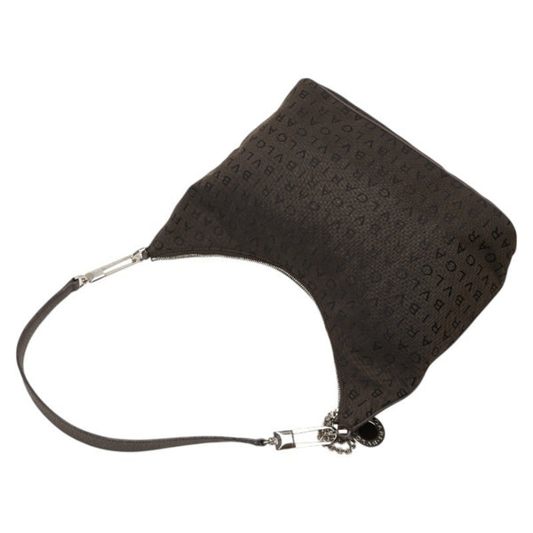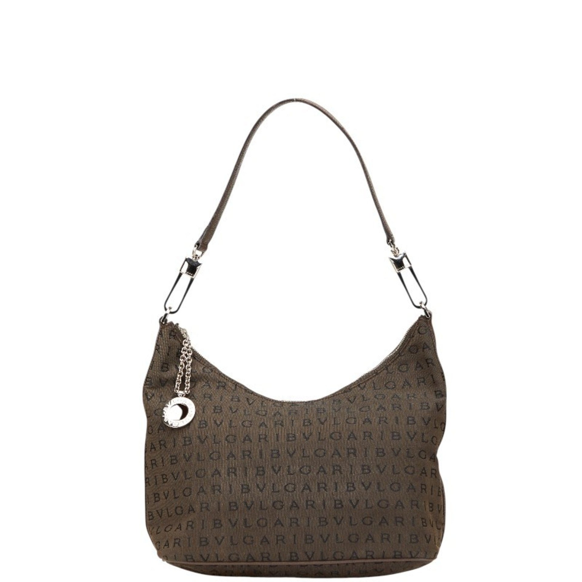 BVLGARI Logomania One-Shoulder Bag Handbag Brown Canvas Leather Women\'s