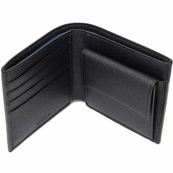BVLGARI Man Bifold Wallet Grained Leather 30396 Black Blue