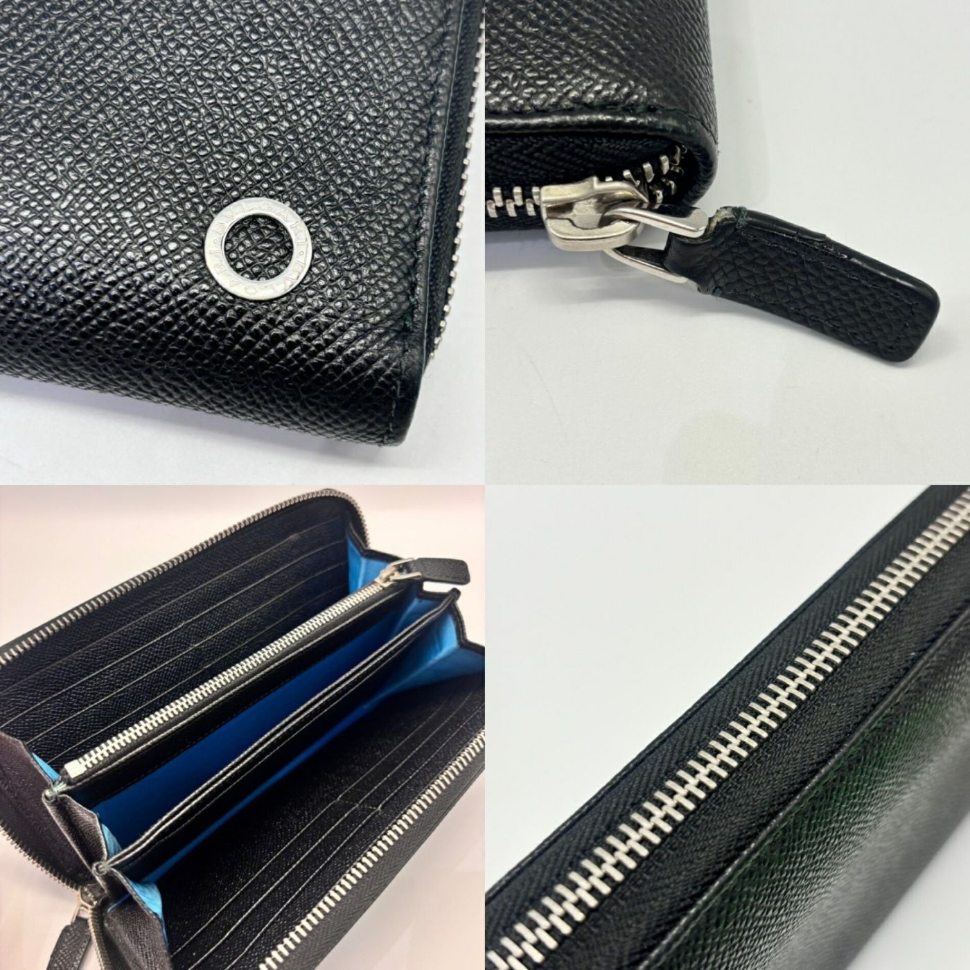 BVLGARI Men\'s Zip-Around Long Wallet in Black and Blue Leather (284230)