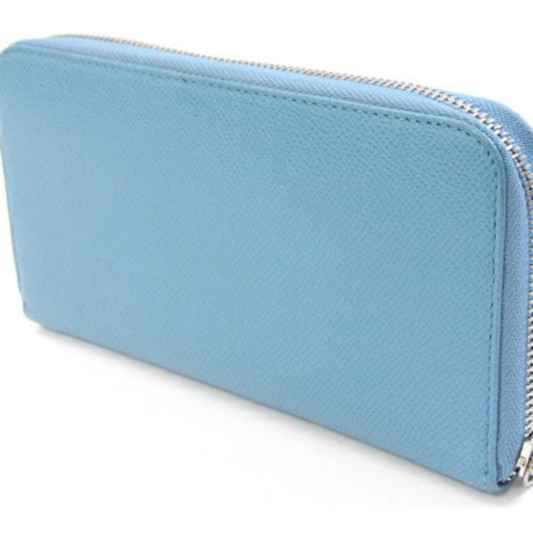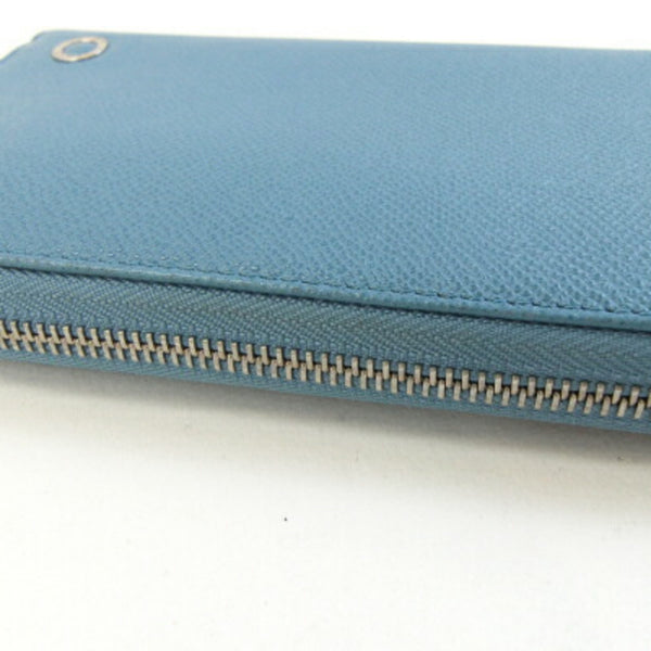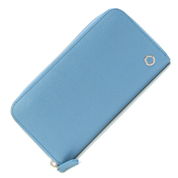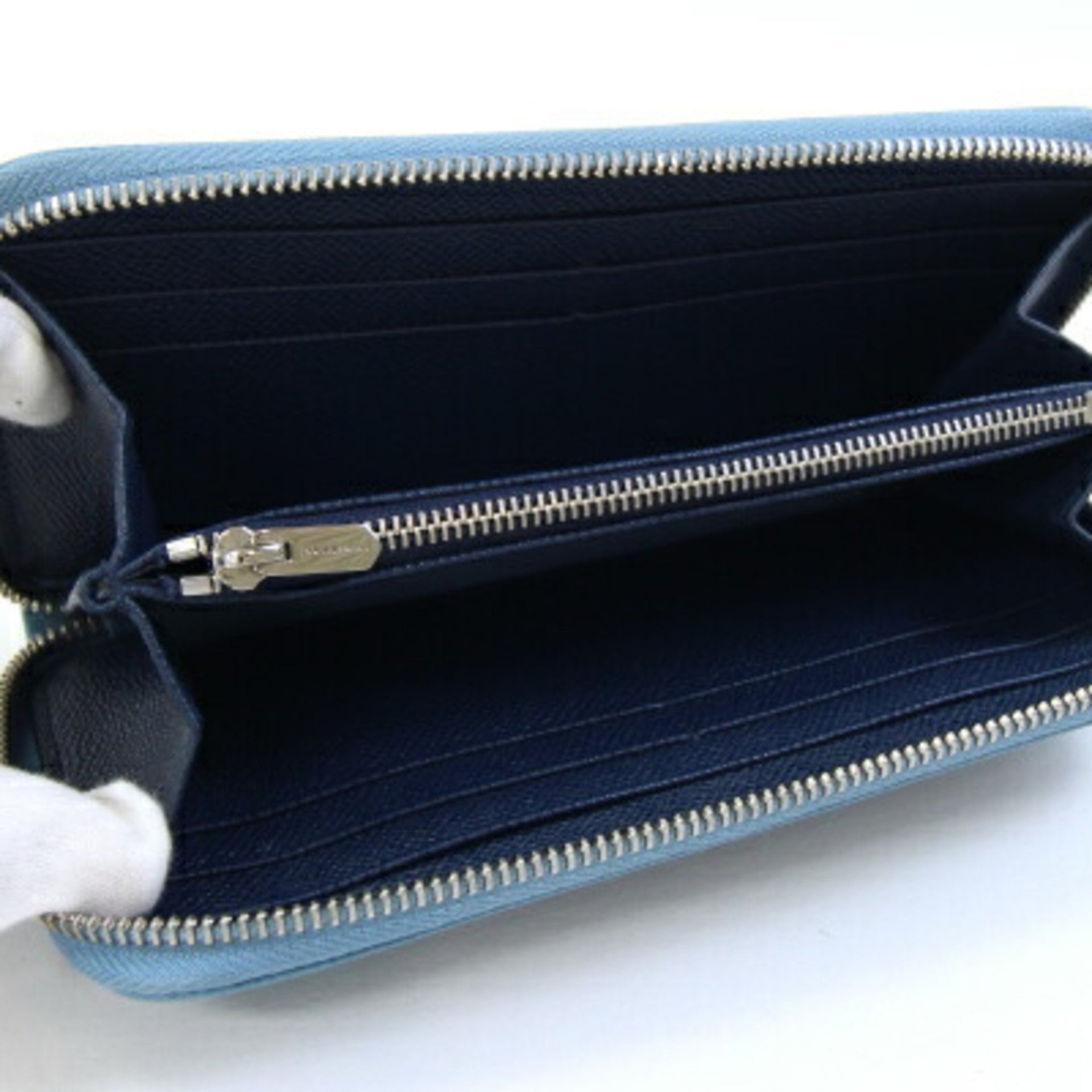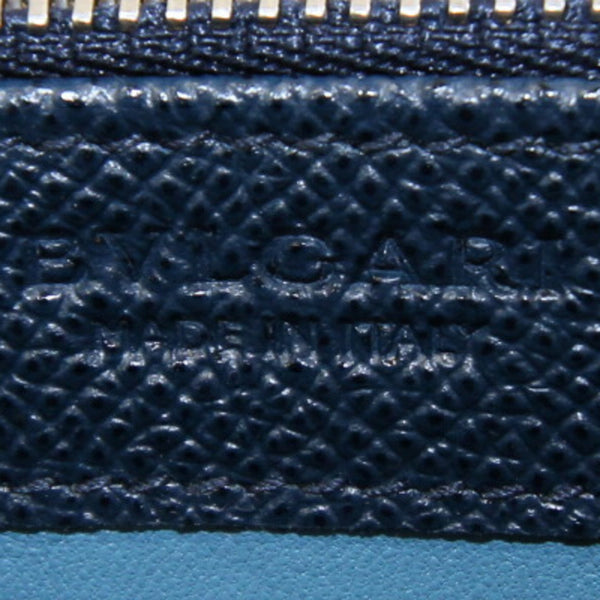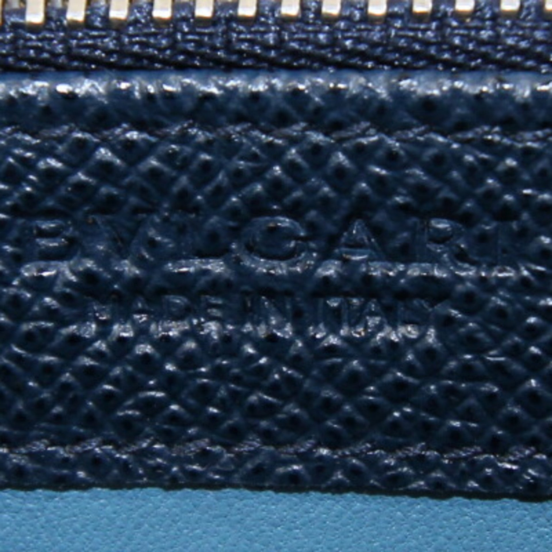 BVLGARI Round Long Wallet MAN 291425 Light Blue Navy Leather Bicolor Men\'s