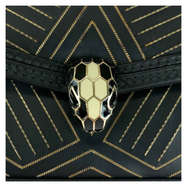 BVLGARI Serpenti Diamond Blast Black/White with Gold Hardware and Leather Chain Shoulder Bag/Pochette for Women