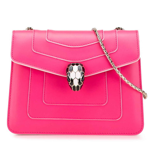 BVLGARI Serpenti Forever Chain Shoulder Bag in Pink Leather for Women