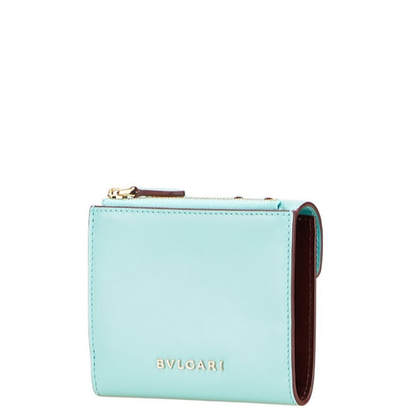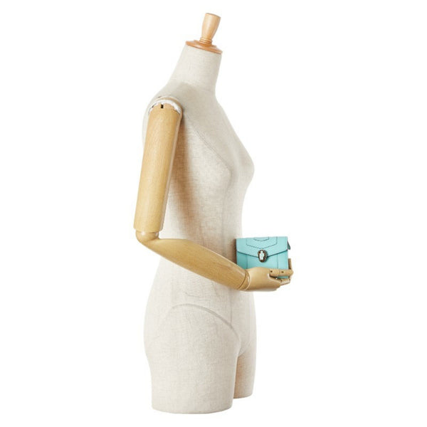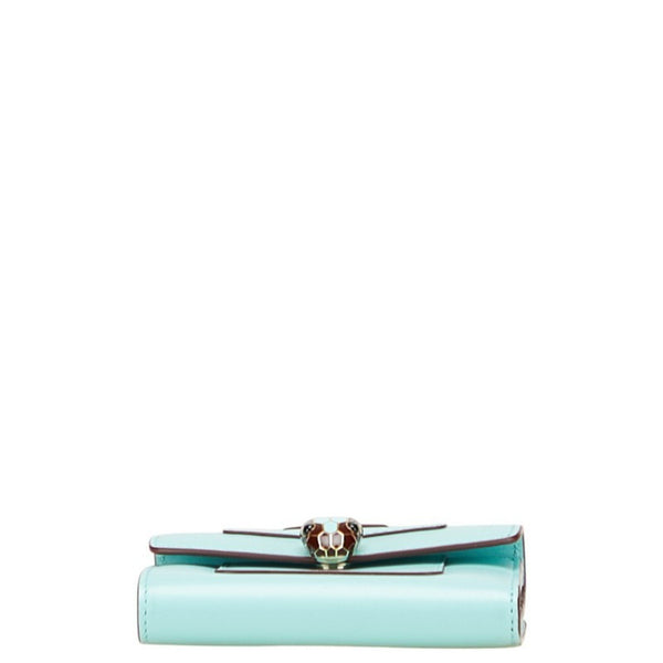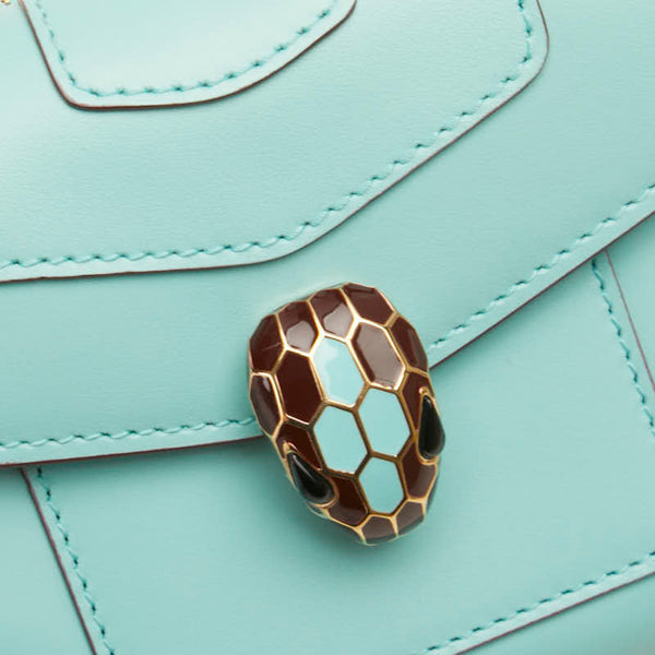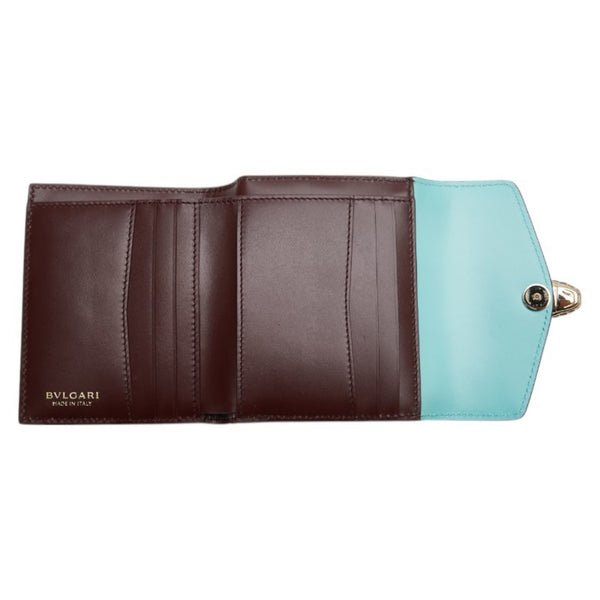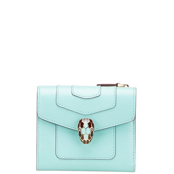 BVLGARI Serpenti Forever Snake Two-Tone Tri-fold Wallet in Light Blue and Brown Leather for Women