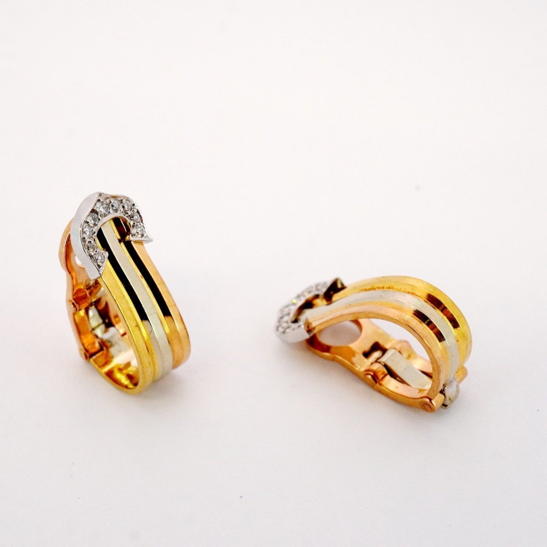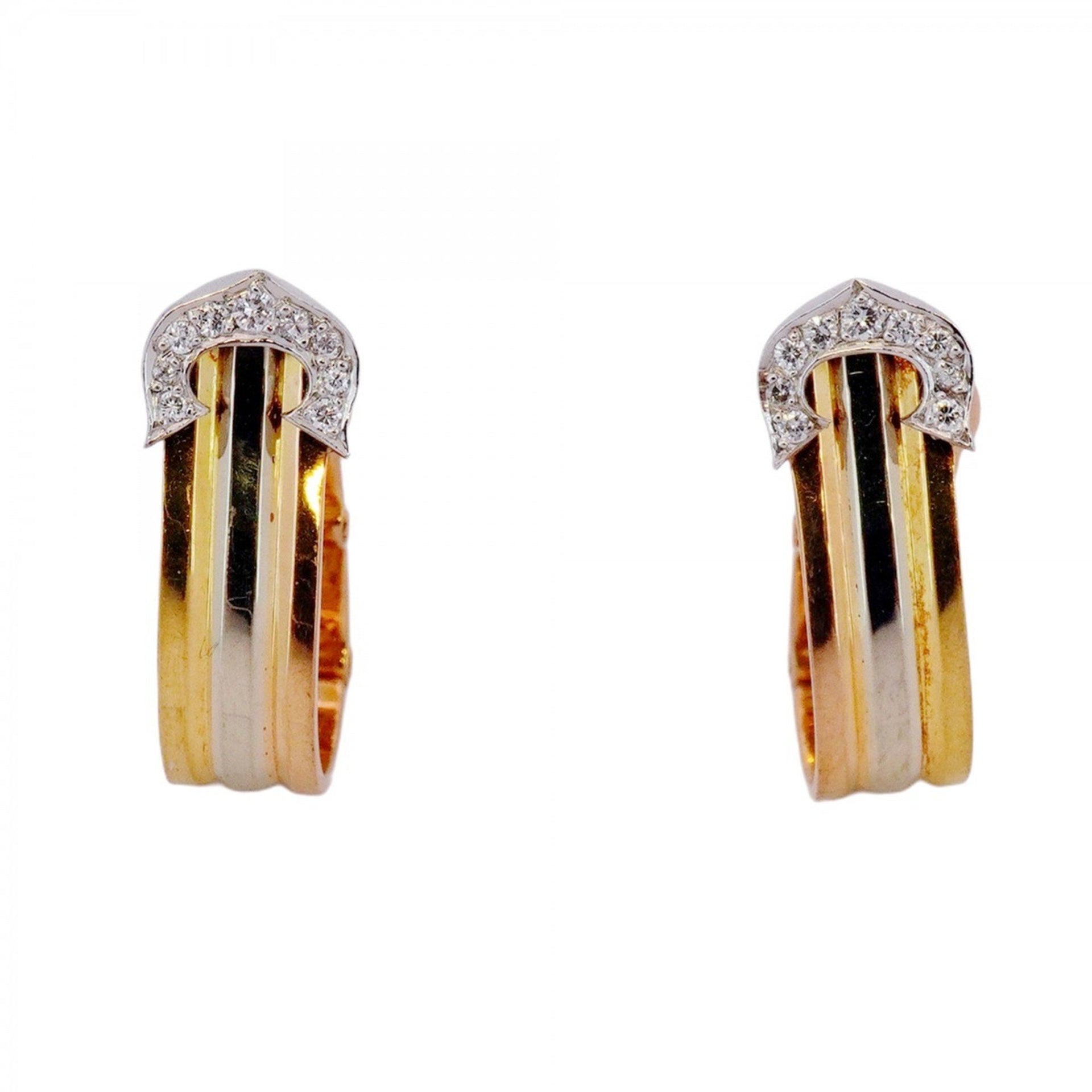 Cartier 2C Three-Color Earrings in 18K Yellow Gold, White Pink Gold with Diamonds for Women