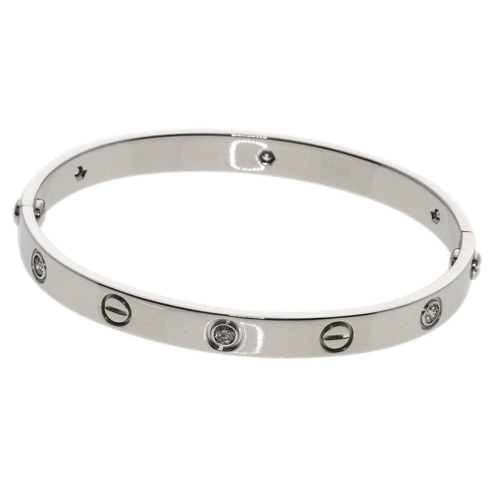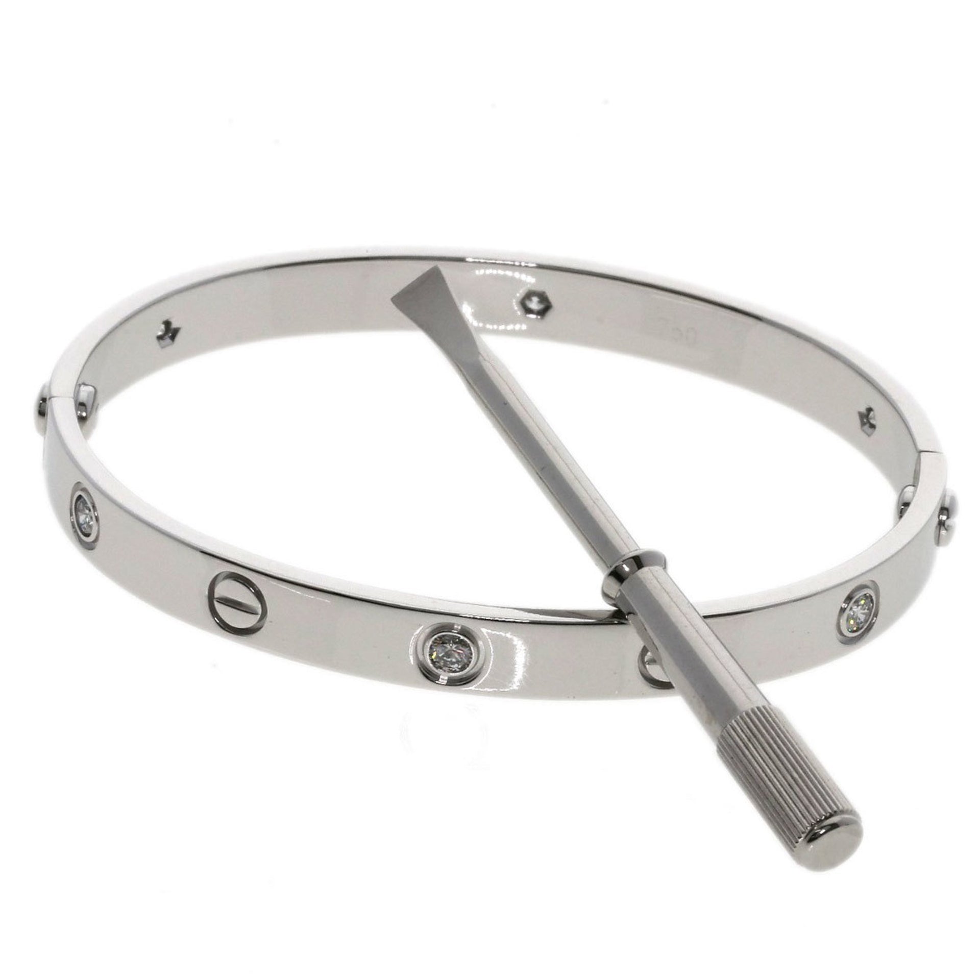 Cartier Love Bracelet Half Diamond with Screwdriver #17 18K White Gold Women\'s CARTIER