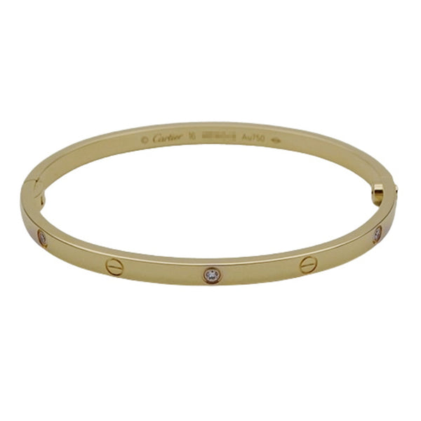 Cartier Love Bracelet, Small, 750YG Yellow Gold, 6-Piece Half Diamond Bangle, #16, New Model, Polished, for Men and Women