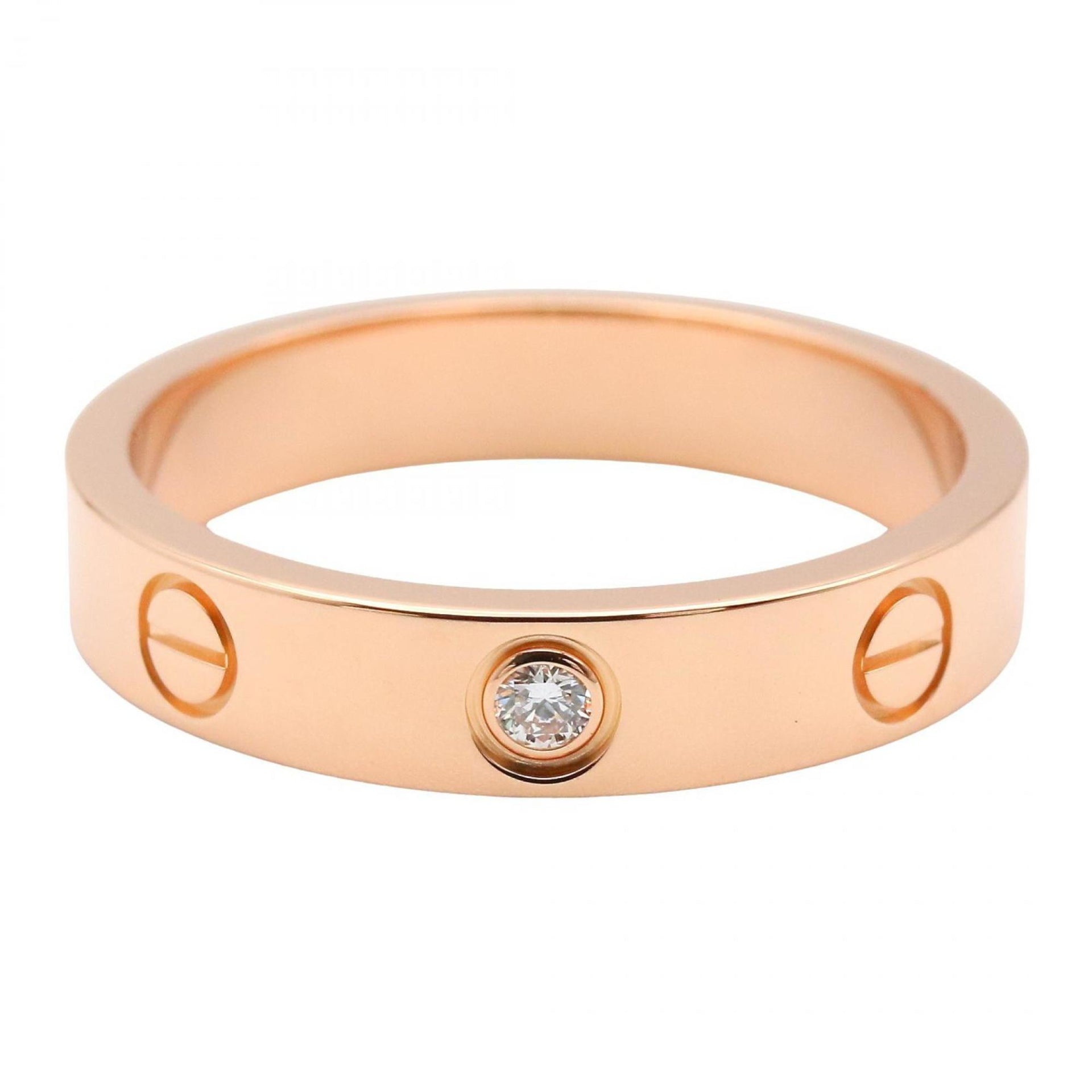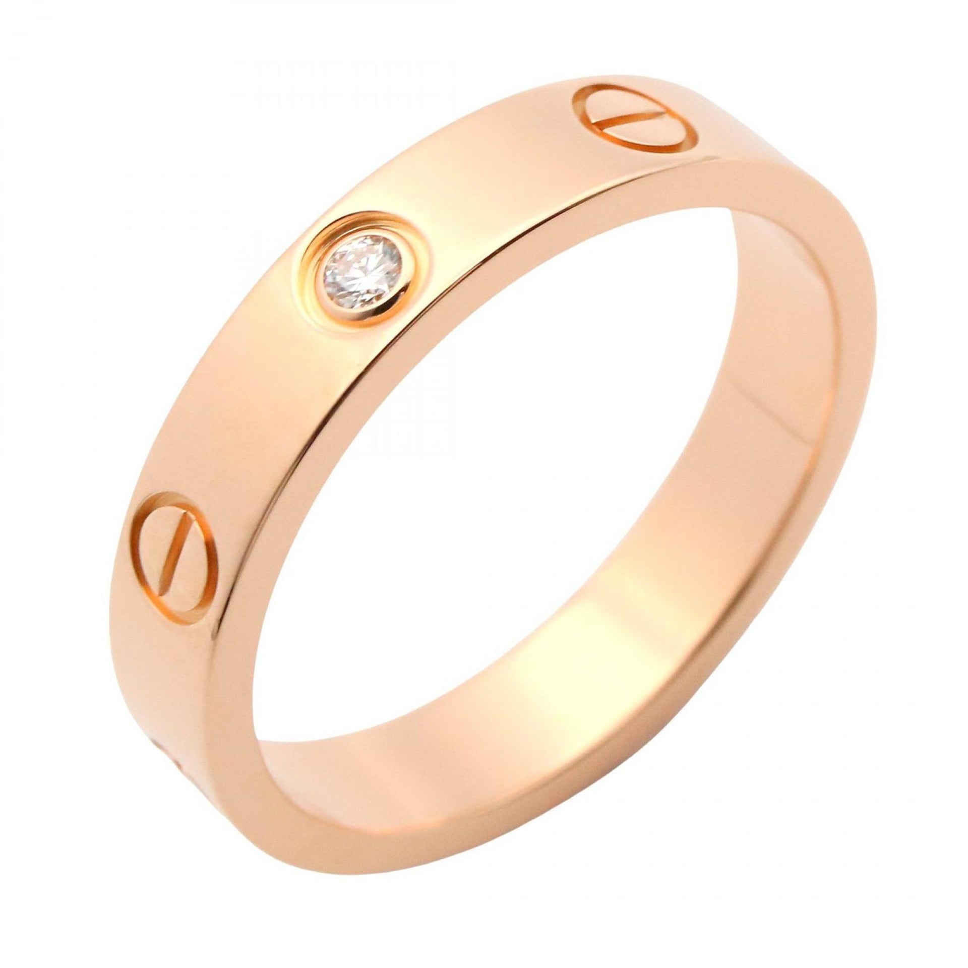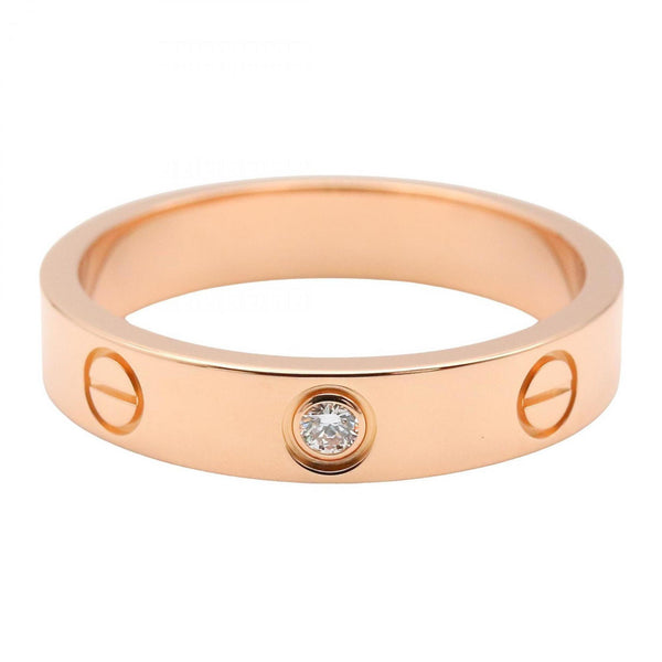 Cartier Mini Love Ring (1PD) in 18K Pink Gold with Diamonds, Clear or Gold, Women\'s, B4050700