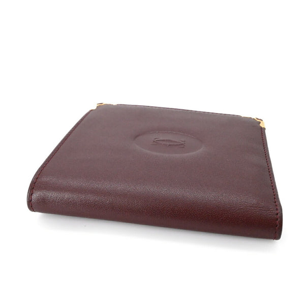 Cartier Must Line Bifold Wallet, Compact, Bordeaux and Red Leather with Coin Purse, Women\'s