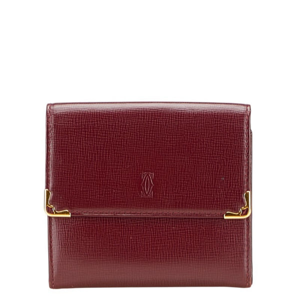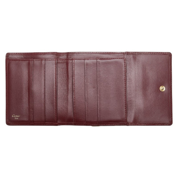 Cartier Must Line Bifold Wallet Wine Red Bordeaux Leather Women\'s CARTIER