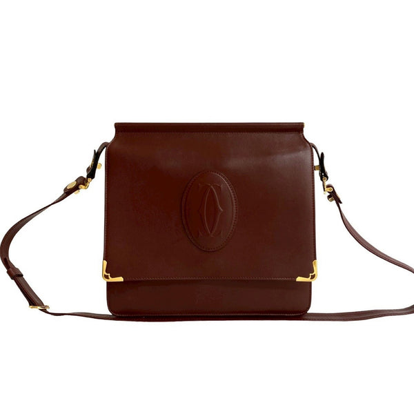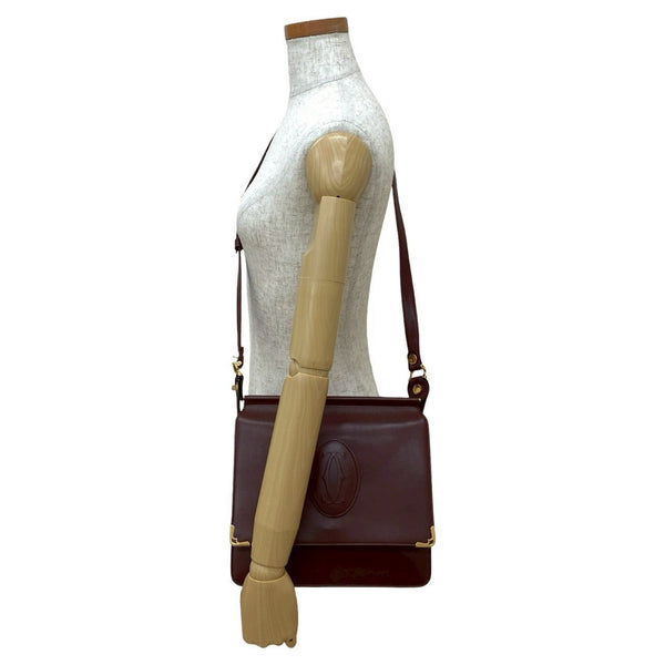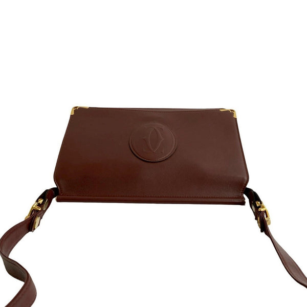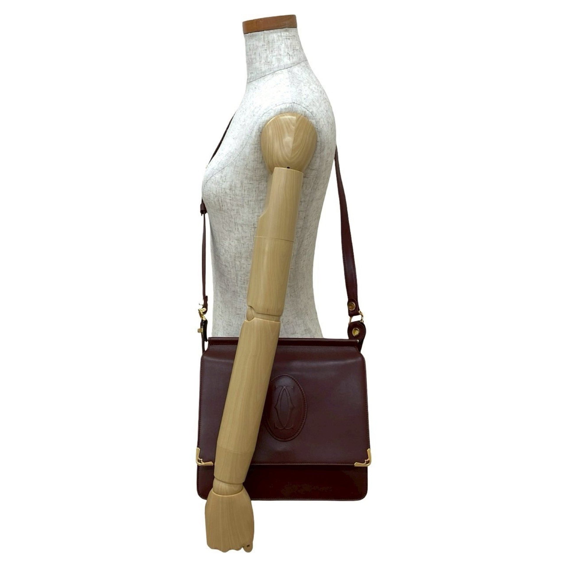 CARTIER Must Line Logo Calf Leather Shoulder Bag/Pochette/Sacoche in Bordeaux 20614