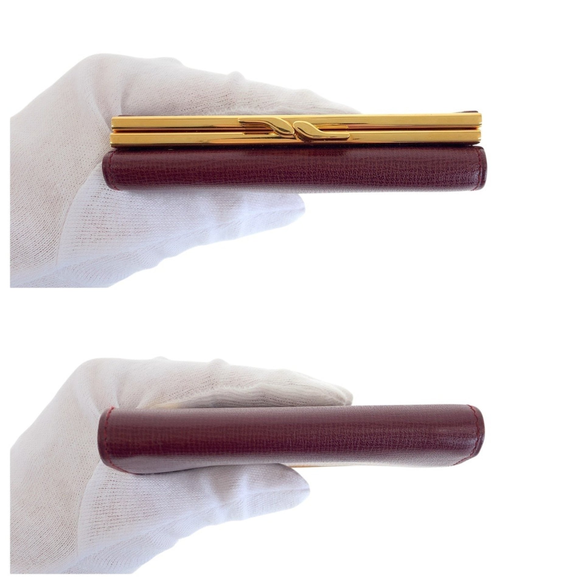 CARTIER Must Line Wine Red Bordeaux Gold Hardware Leather Folding Wallet Compact Unisex Women\'s