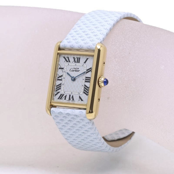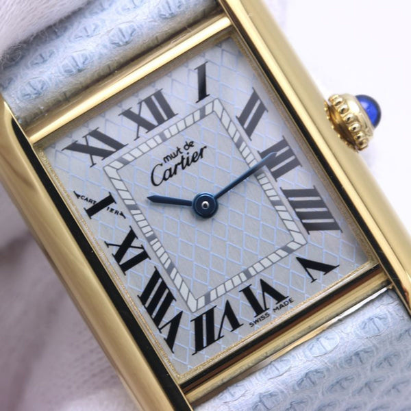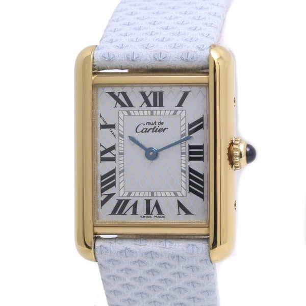 CARTIER Must Tank SM Aquarino W1018587 Limited Edition Silver 925 x Cowhide Leather Ladies 39967 Watch
