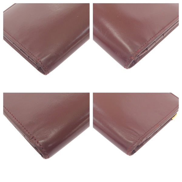 CARTIER Vintage Must Line Wine Red Leather Long Wallet with Gold Hardware for Women