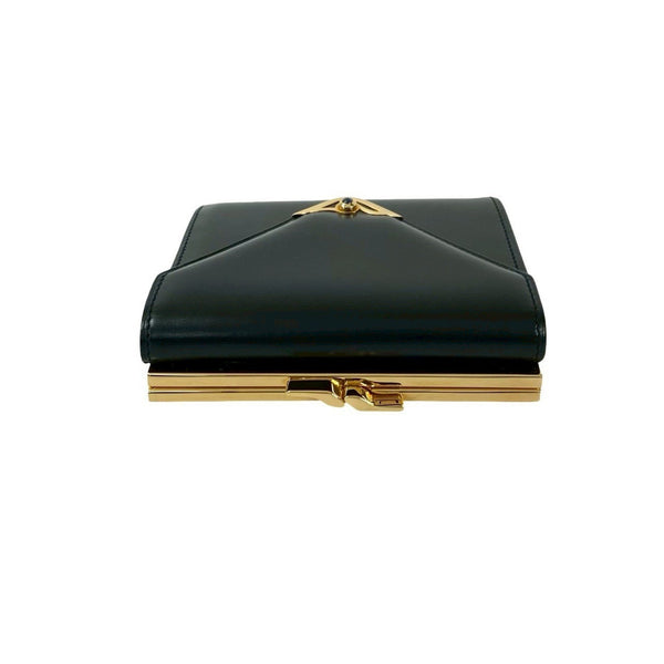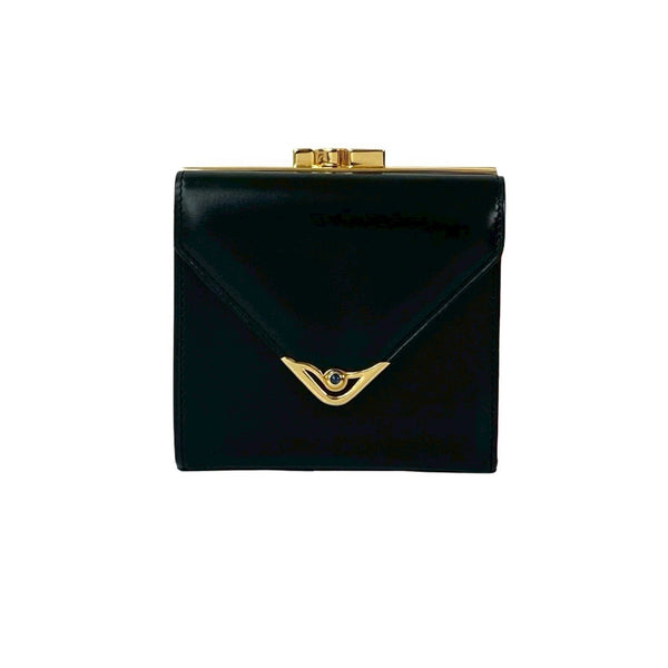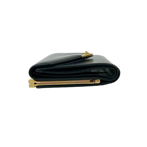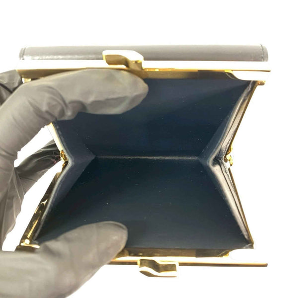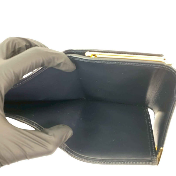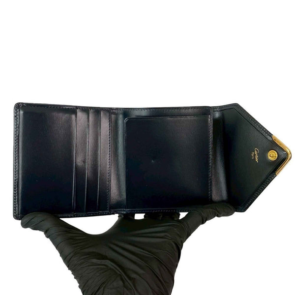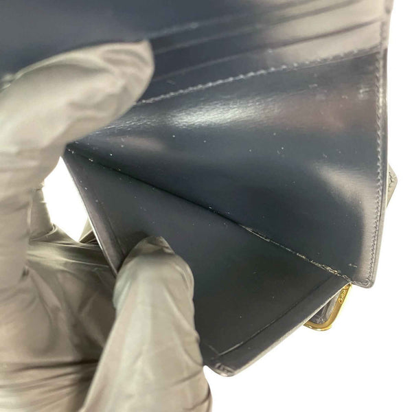 CARTIER Vintage Sapphire Line Calf Leather Clasp Bi-fold Wallet, Navy Blue, 28074