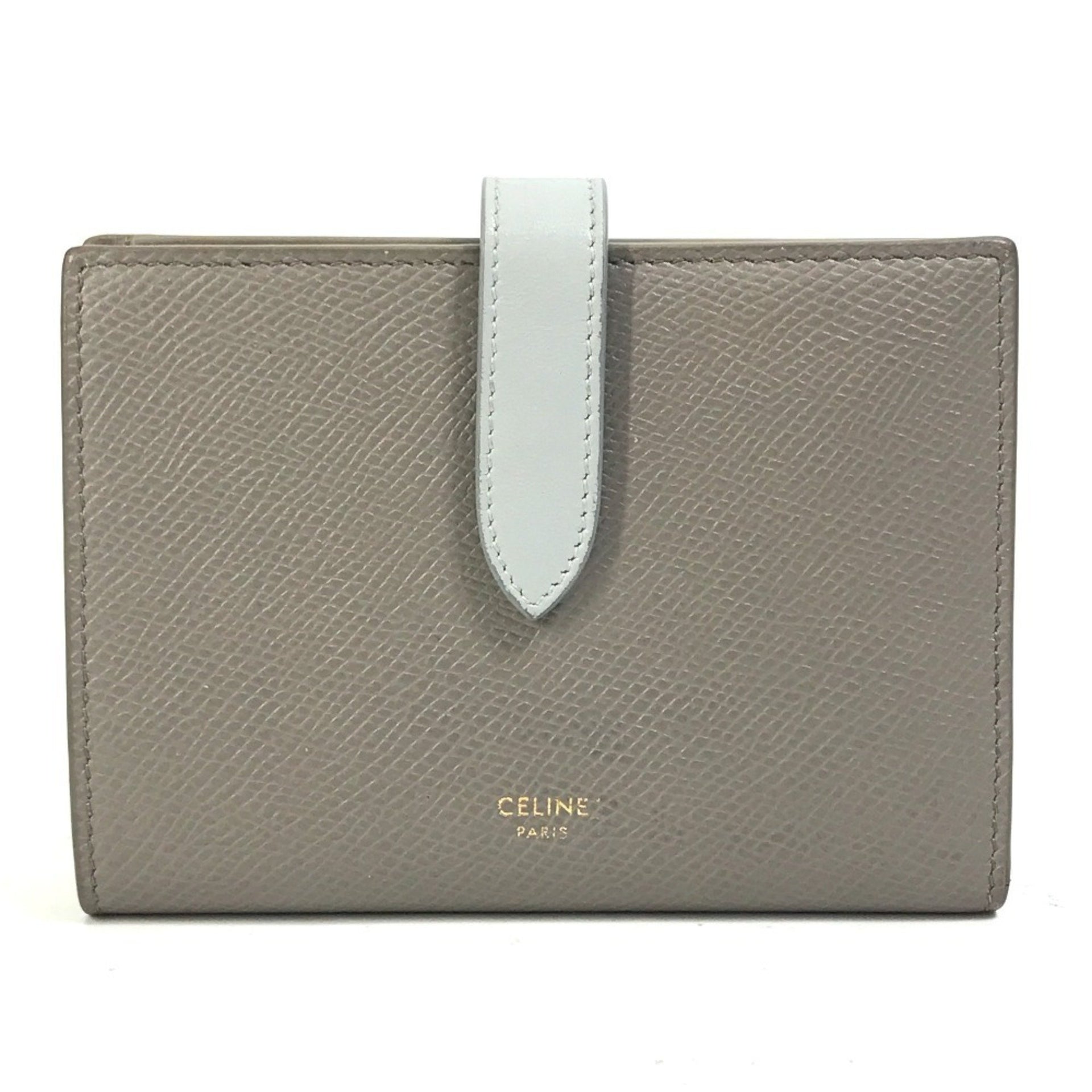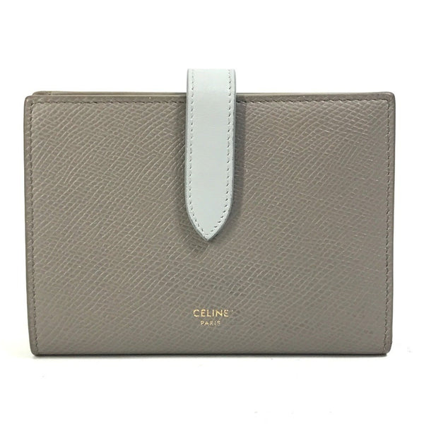 CELINE 10B643BRU.10PI Two-Tone Medium Strap Wallet, Tri-fold Leather, Women\'s, Pebble Mineral, Gray x Light Blue