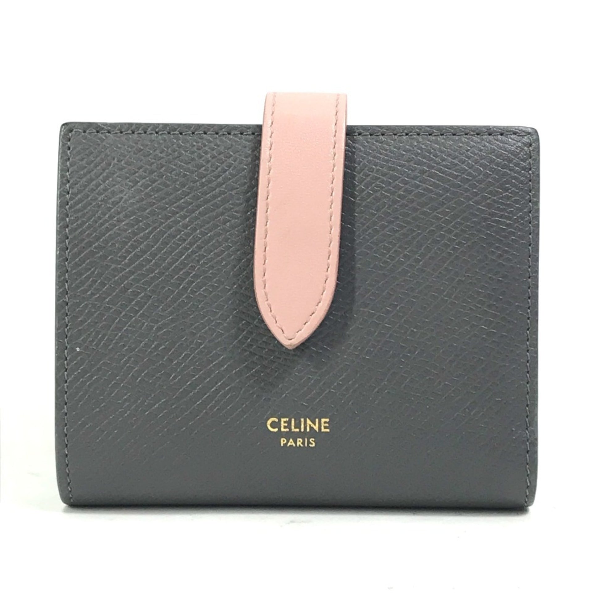 CELINE 10H263BRU.10GV Two-Tone Small Strap Wallet, Compact Tri-Fold Leather Women\'s, Gray and Pink